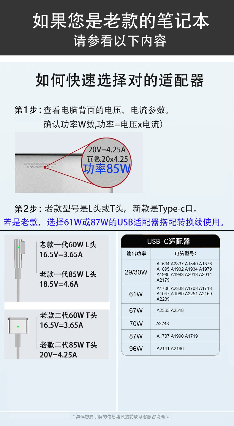 Блок питания для MacBook 30W, 60W, 61W, 67W, 70W, 85W, 87W, 96W
