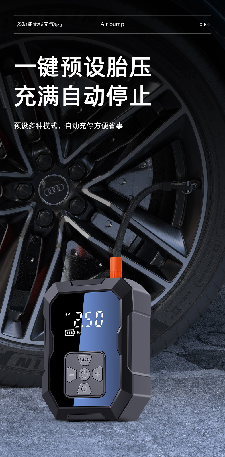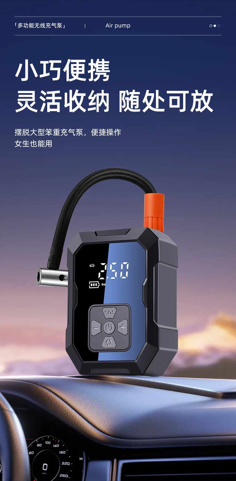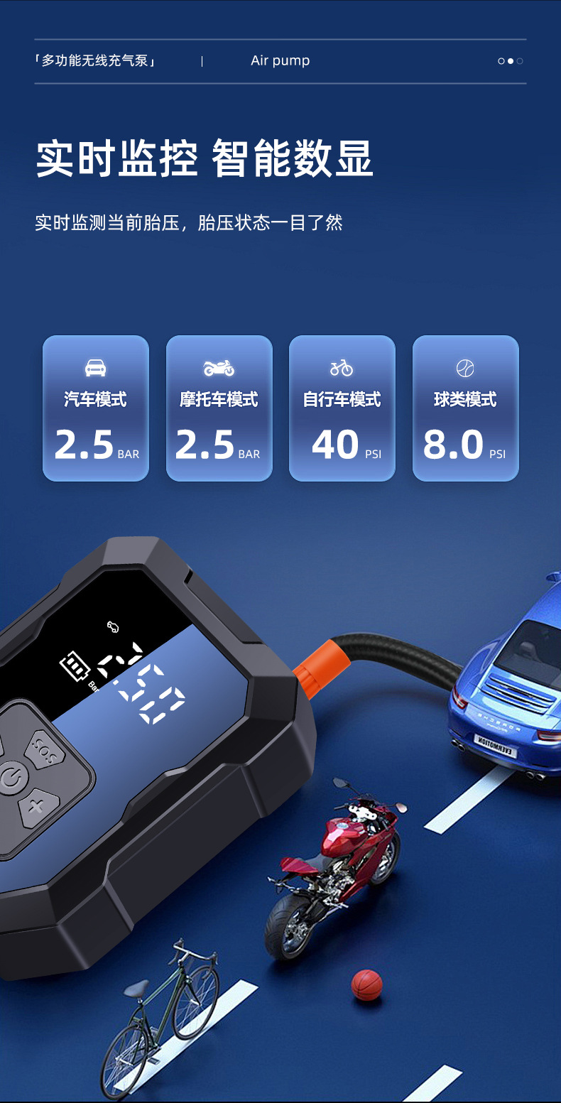 Портативный беспроводной насос для автомобиля, многофункциональный насос для зарядки мобильных телефонов