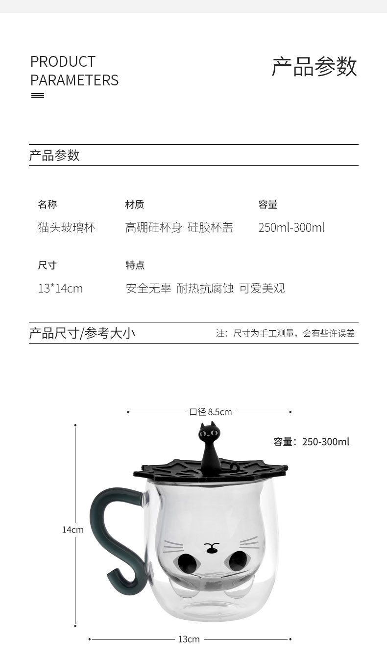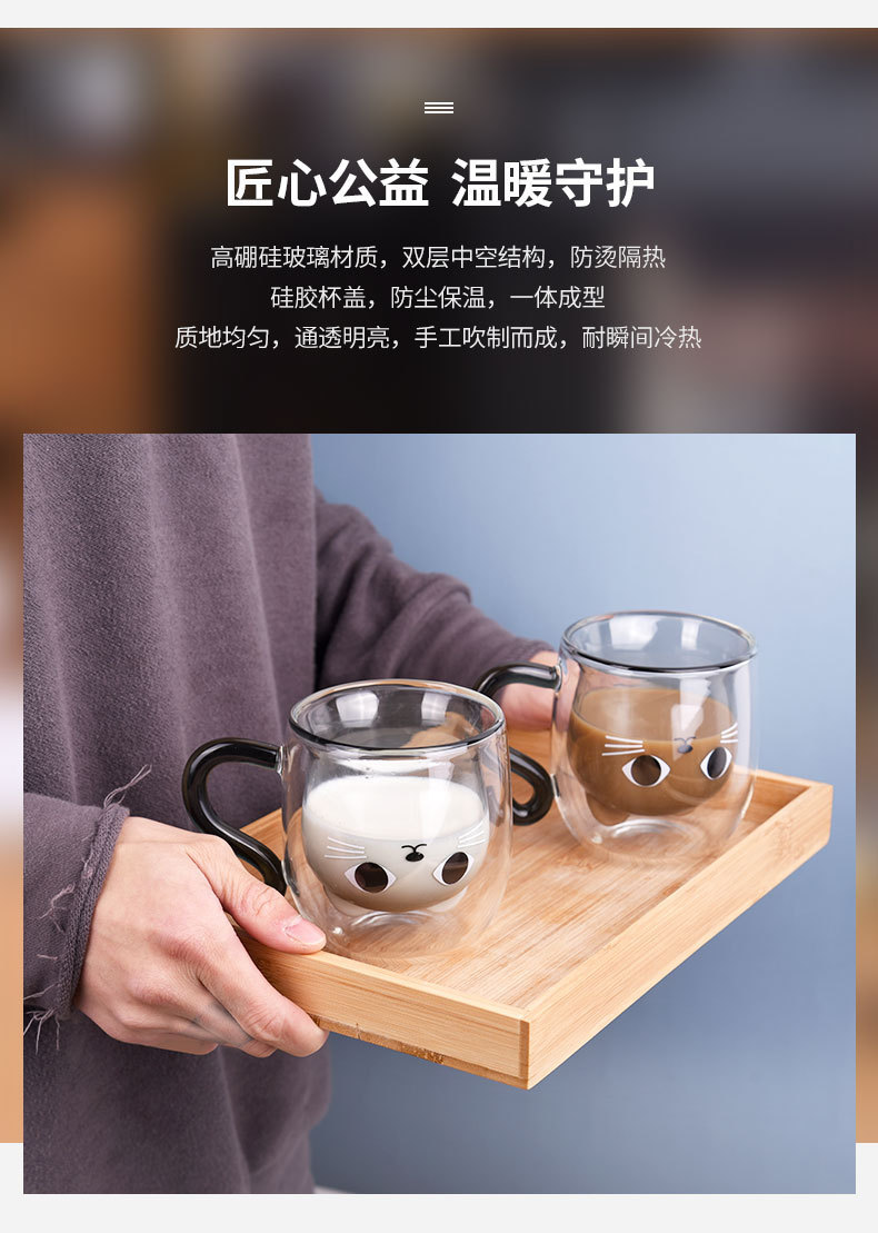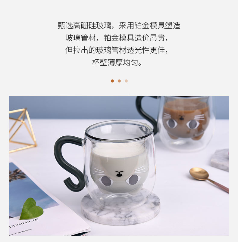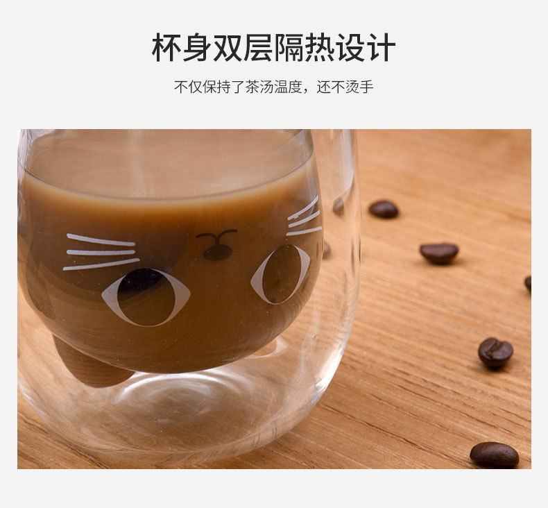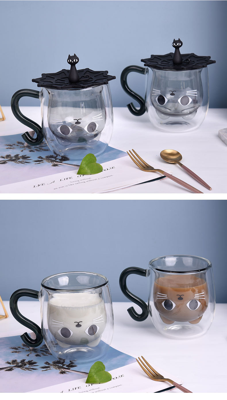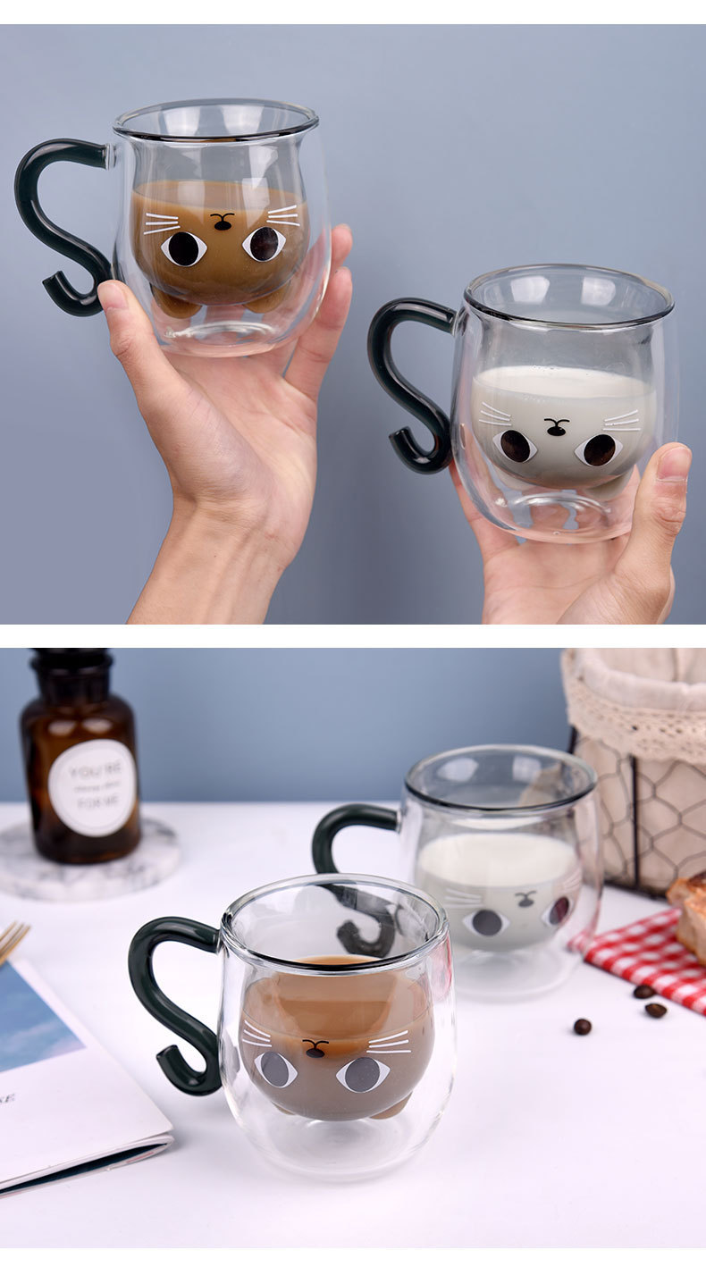 Двуслойная чашка, термостойкая молочная чашка, подарок для девочек, водяная чашка, чашка с кошкой, домашняя чашка для завтрака, из высокобorosilicate стекла