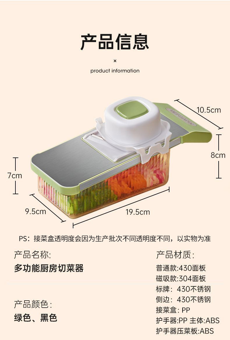 ![]() | Green-304 panel [magnetic suction] three knives [hand guard + knife head box + vegetable receiving box] | ¥17.5 / ≈ 213 ₽ | 858 | 5743544105842 | |