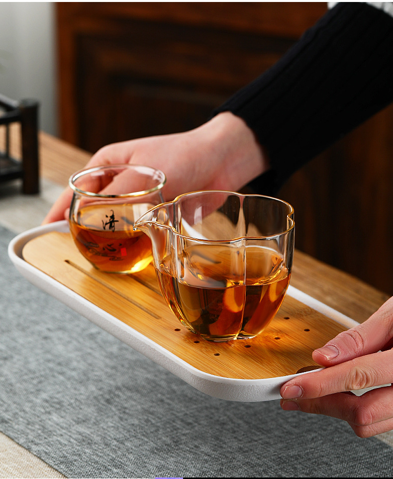 Стильная чаша из высокобorosilicate стекла с вертикальным узором для чая