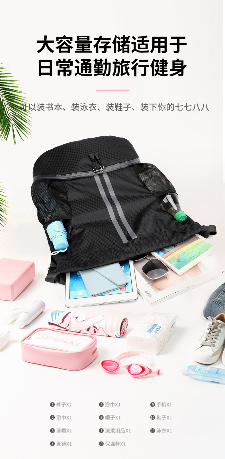 Спортивная сумка для фитнеса женская с разделением для влажного и сухого хранения рюкзак для йоги легкий водонепроницаемый