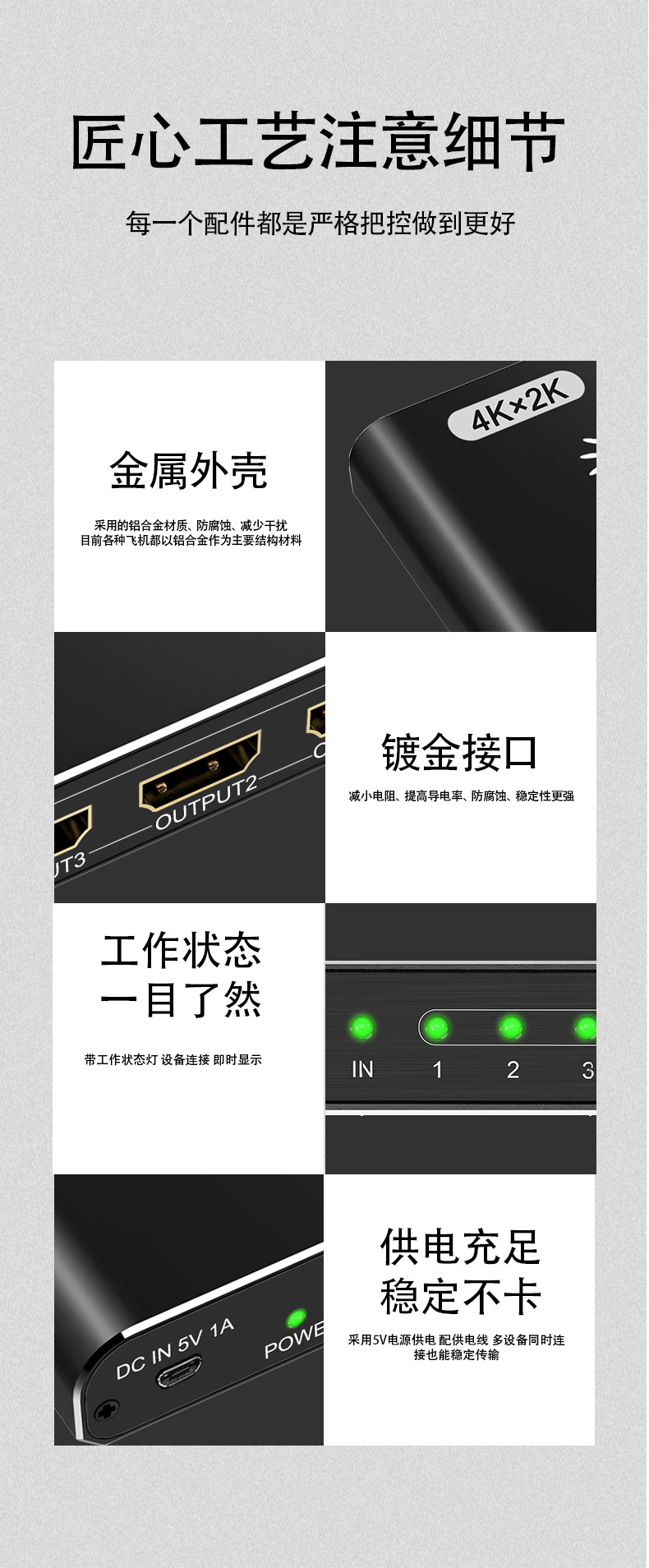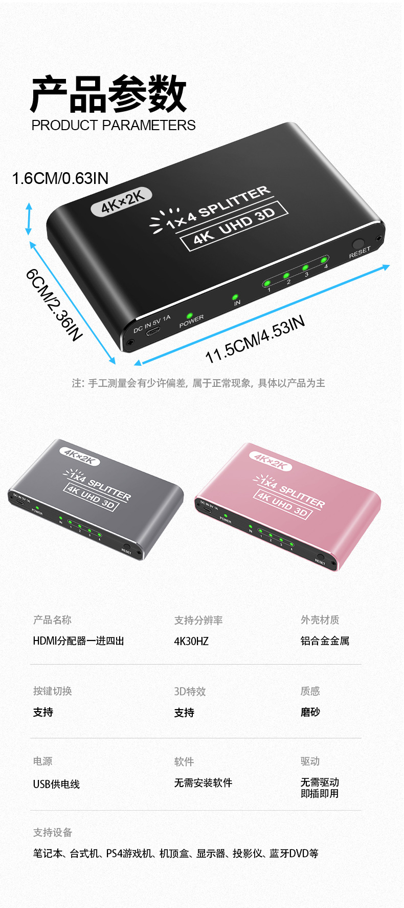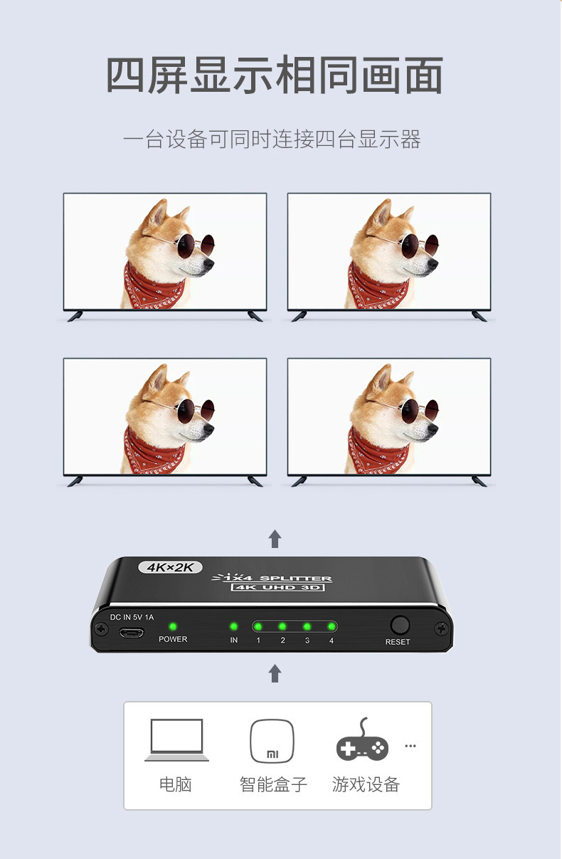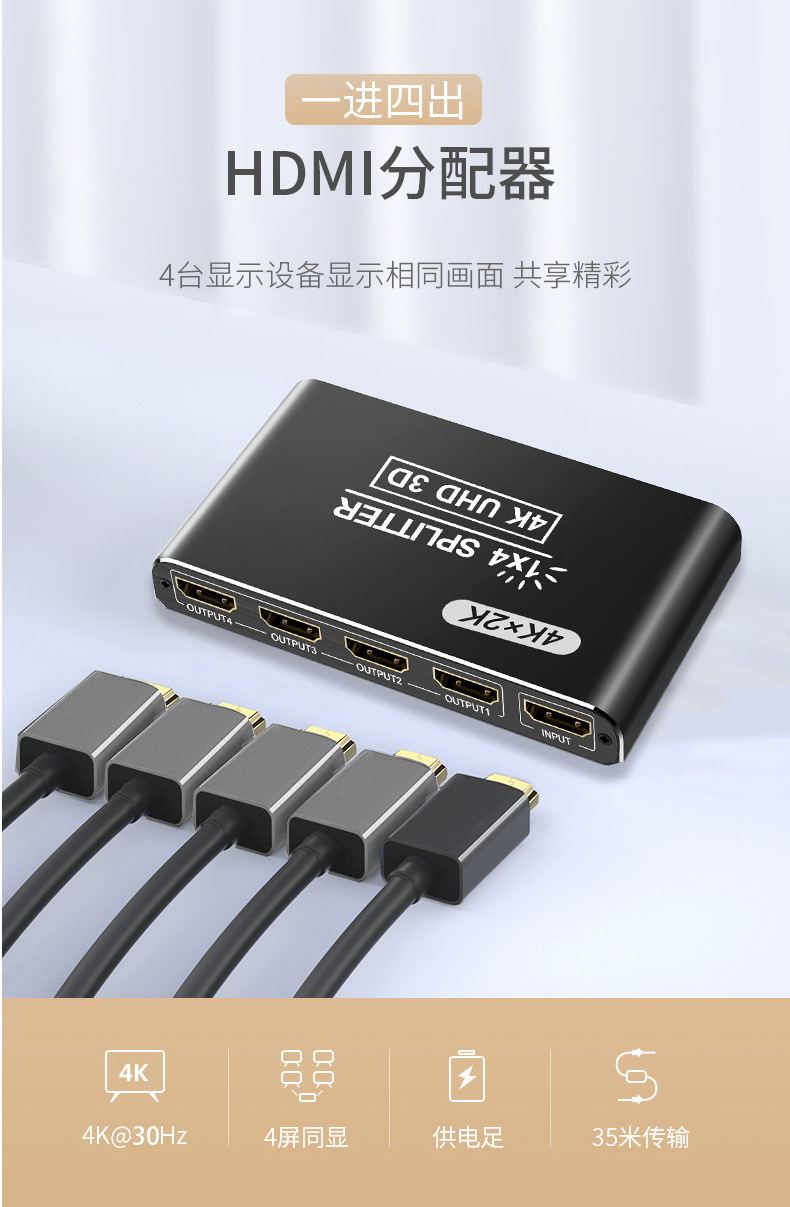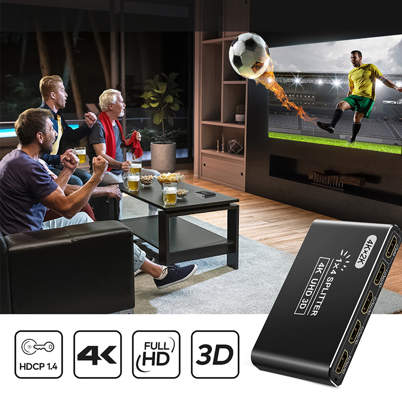 Номер товара Hs-104 hdmi splitter 4k hd computer tv splitter 1 in 4 out frequency divider hd video same screen cross-border manufacturer