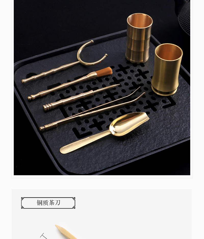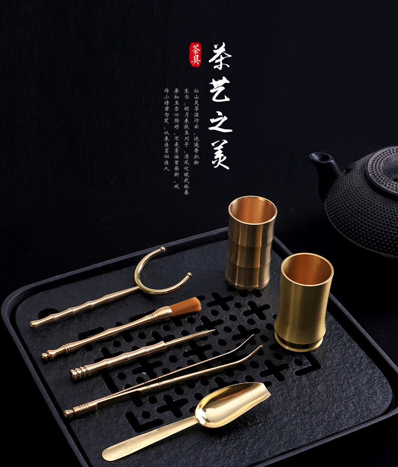 Бронзовые аксессуары для чайной церемонии, шесть джентльменов, зажим для чая, чайный нож, чайная ложка, чайный набор, чайная трубка, пинцет для чая, чайная игла, горшок, ручка, вилка
