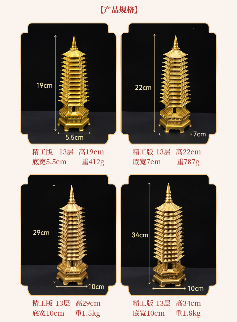 Полная латунь 13-слойные весы Вэньчанг башня домашний вход бронзовая башня подарки украшения башни Вэньчанг