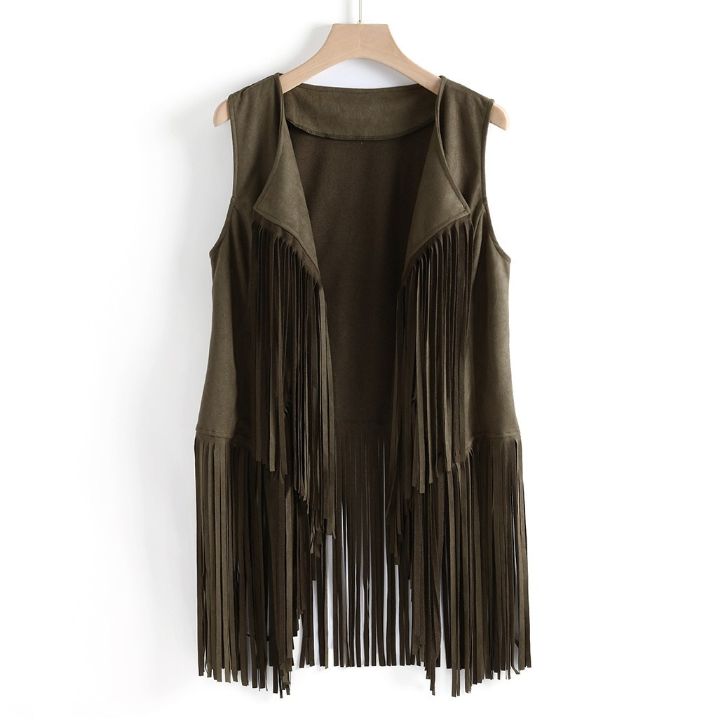 Женский жилет с тонкими кисточками весна/лето 2025, европейский стиль, замша, на заказ