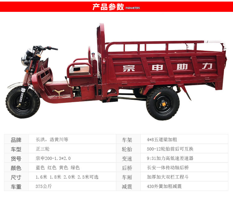 Бензиновый трёхколёсный мотоцикл для грузов, сельскохозяйственный, Zongshen Power