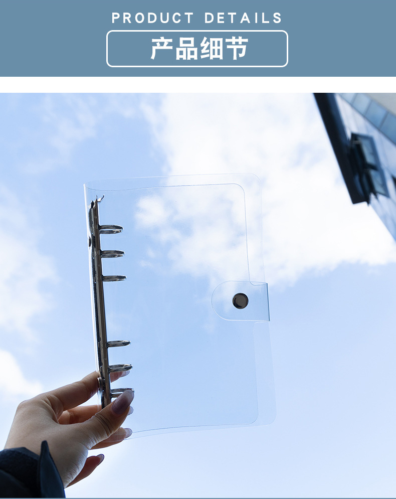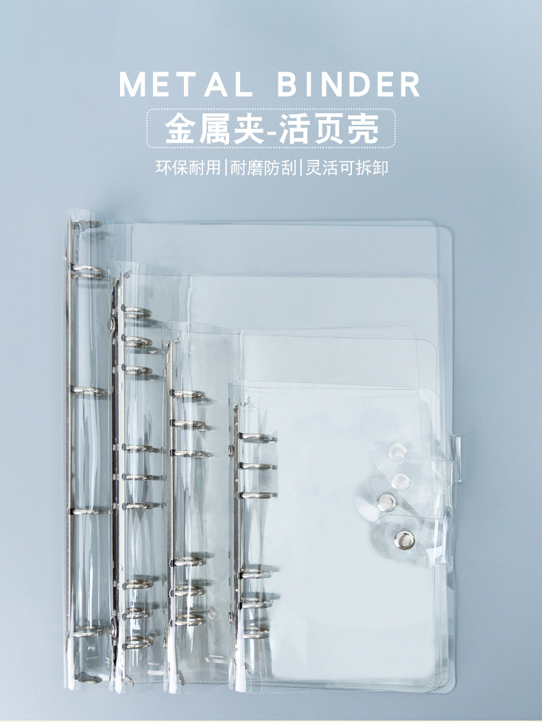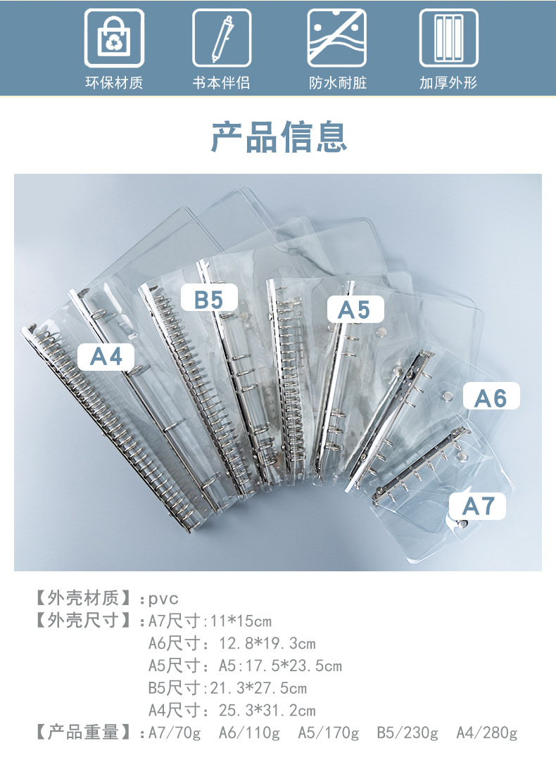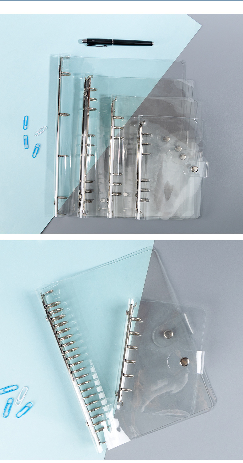 A7 прозрачный блокнот с кольцами, PVC обложка на четыре кольца, внутренний блок для A5A6A4B5