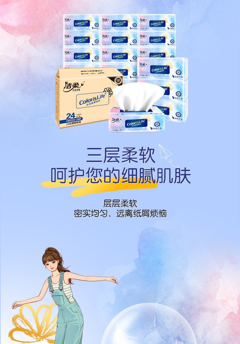 Многоцветная безароматная бумага Jierou, 20 упаковок, 3 слоя, 100 листов, оптовая продажа