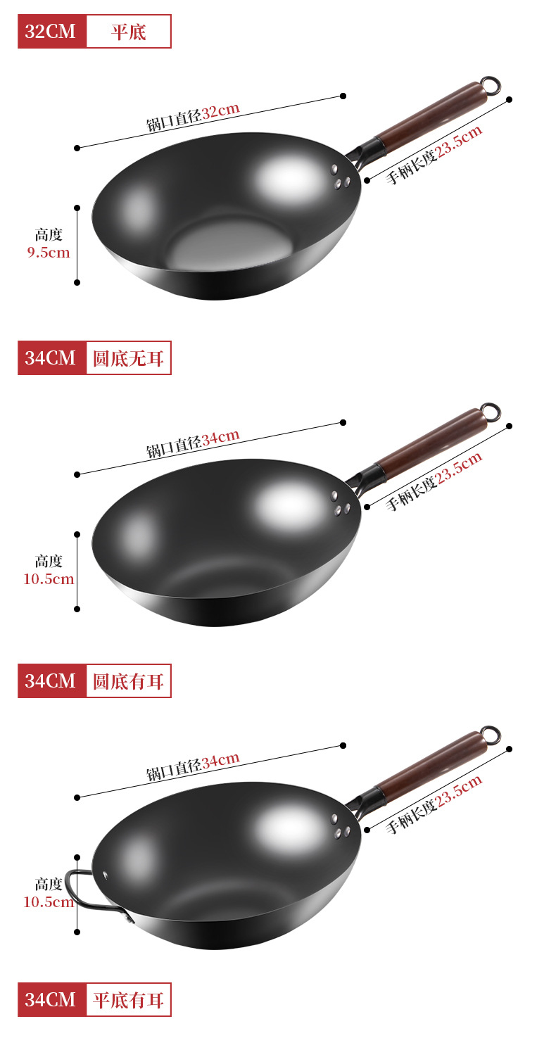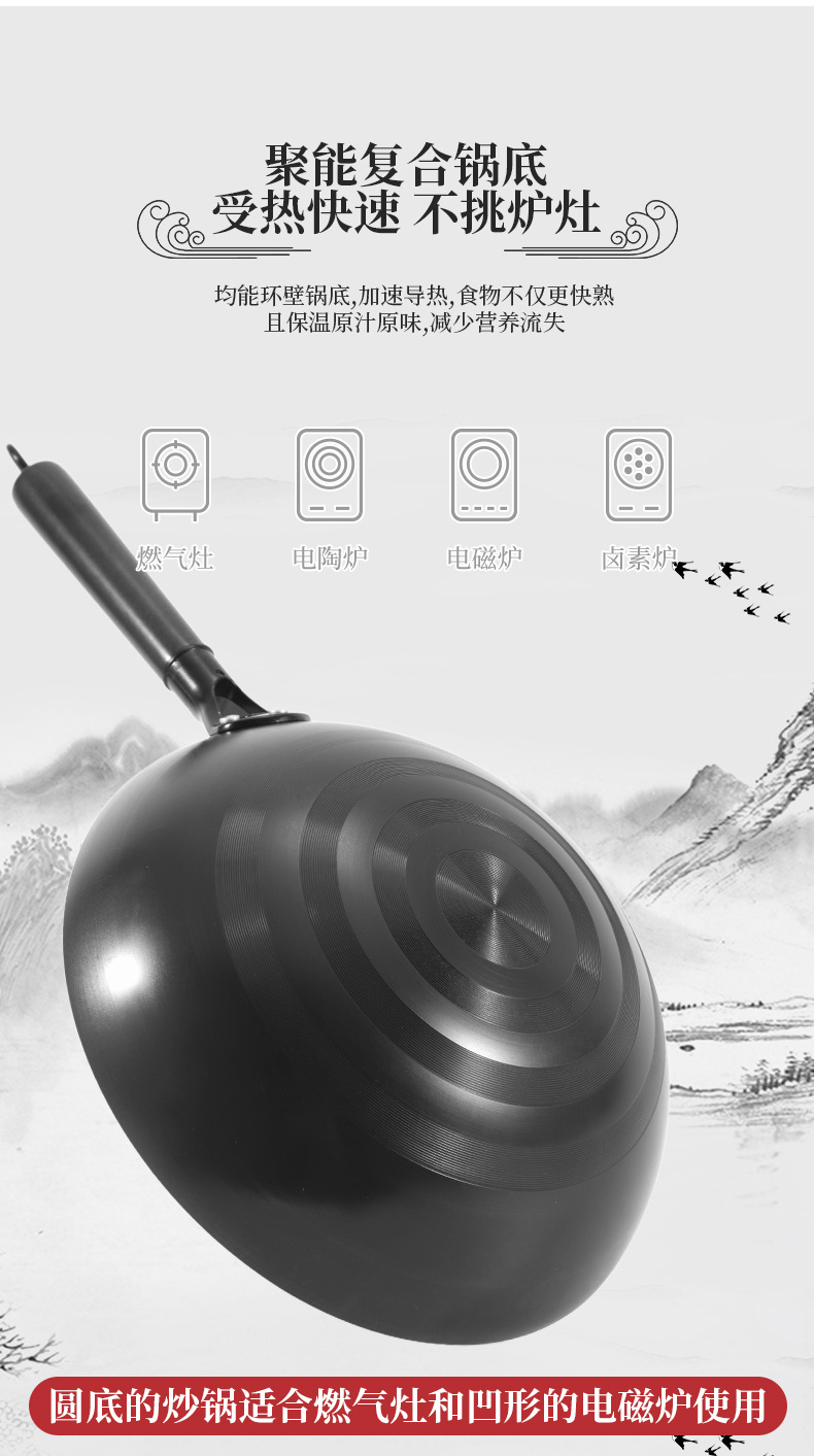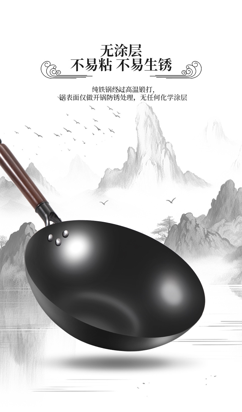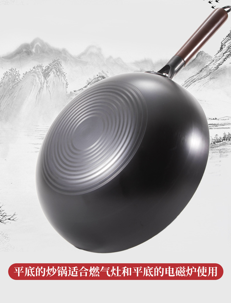 Старомодный чугунный горшок Zhangqiu, household не покрытый вок с круглым дном, нитридный кованый чугунный горшок, антипригарная кастрюля, подарочная кастрюля