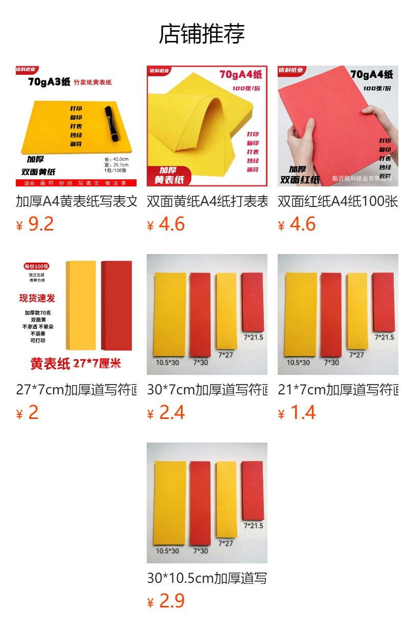 Фу нарисованная желтая бумага 21*7см плюс щедрое письмо длинной полосы хорошая двусторонняя пустая бумага не пропускает чернила