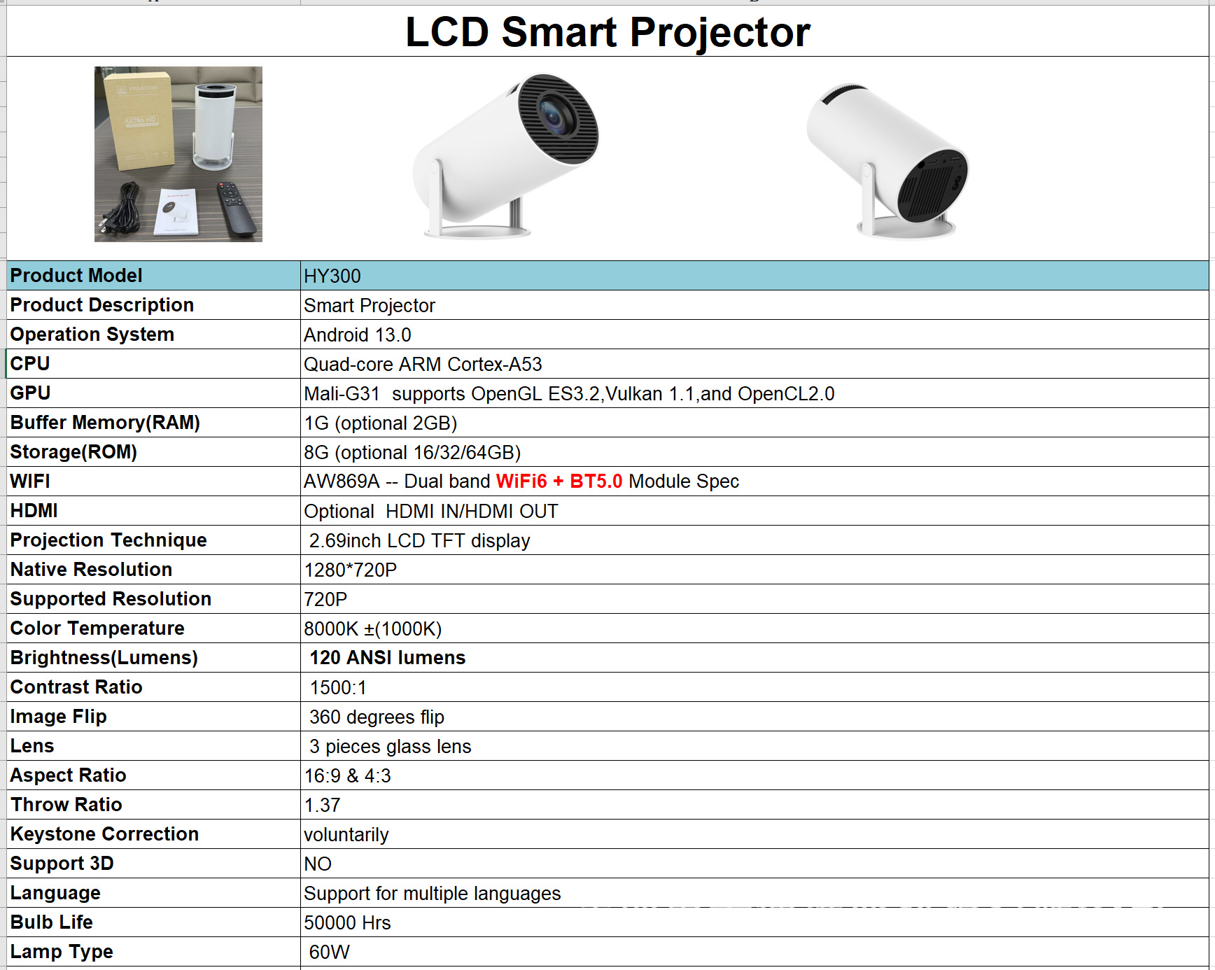 Новый Hy300 4K Wi-Fi HD зарубежный Android 13 версия, 5G Bluetooth портативный мини проектор