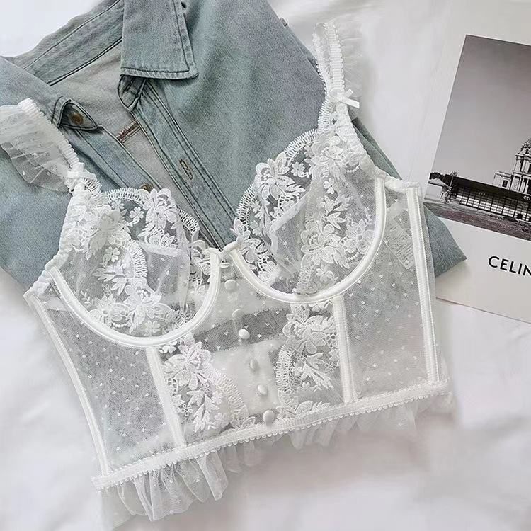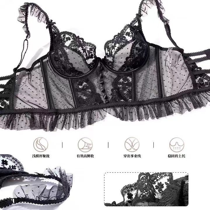 Кружевной бюстгальтер с косточками, ультра-тонкий, для больших грудей, с вышивкой