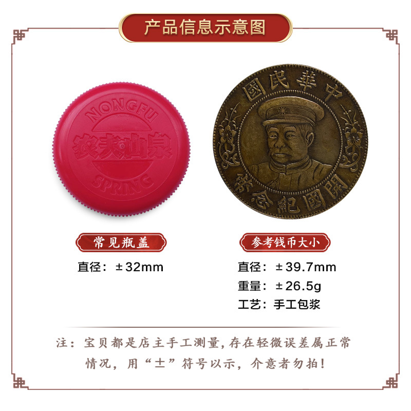 Образец латунной серебряной монеты, статуя Ли Юаньхунга, основателя страны, 39.7 мм, старая медь, латунь, для коллекционирования