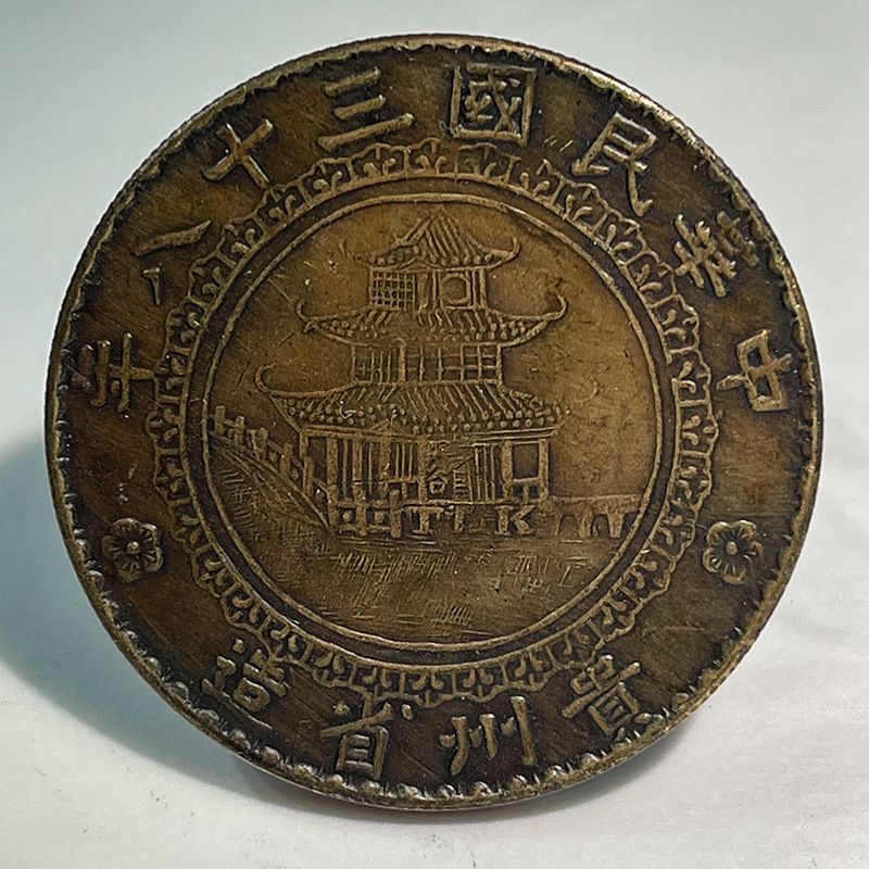 Образец латунной серебряной монеты, Гуйчжоу, круглое окно, бамбук, 38-й год Китайской Республики, 39.7 мм, старая медь, латунь, для коллекционирования и игры