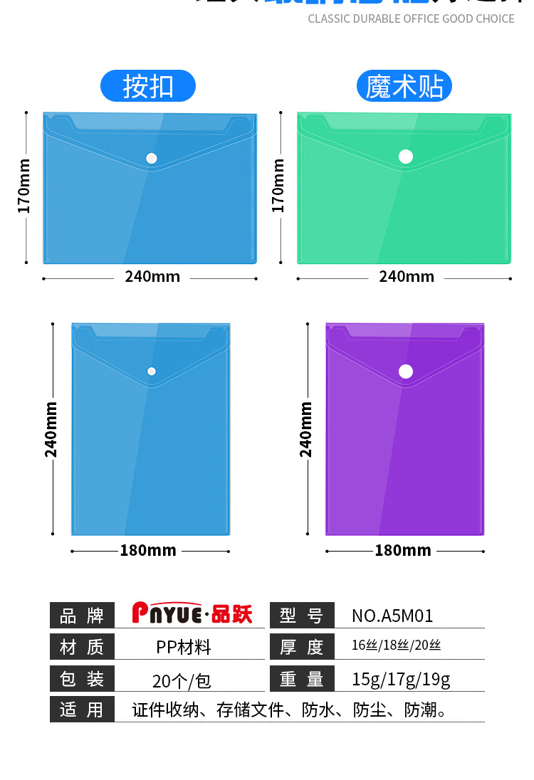 Оптовая продажа горизонтального прозрачного файла A5, вертикального файла A7 с липучкой для хранения информации