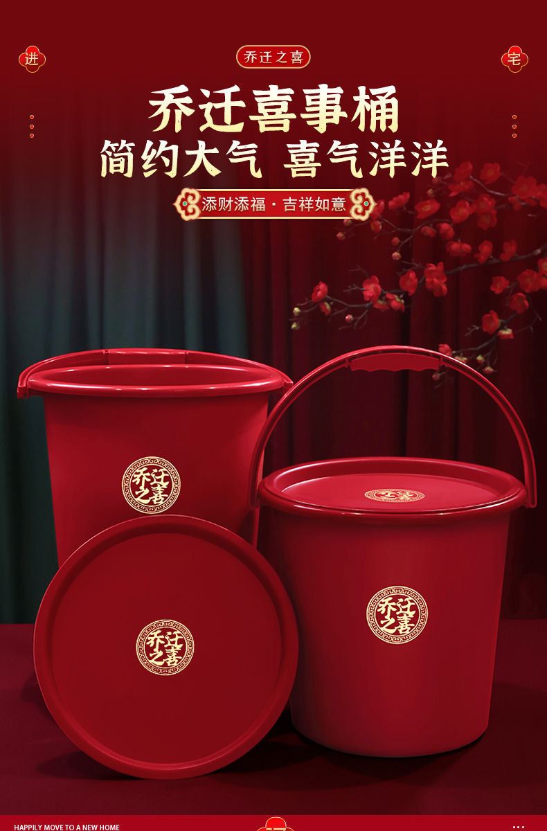 Праздничное ведро для риса, пластиковое ведро для дома, новоселье, украшение с крышкой, принадлежности для переезда