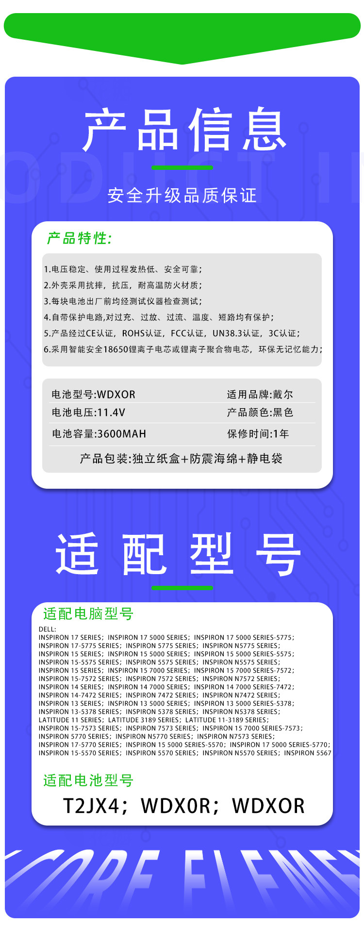 Подходит для Dell Wdxor Yan 7000 Inspiron 14 7560 7460 7572 батарея ноутбука