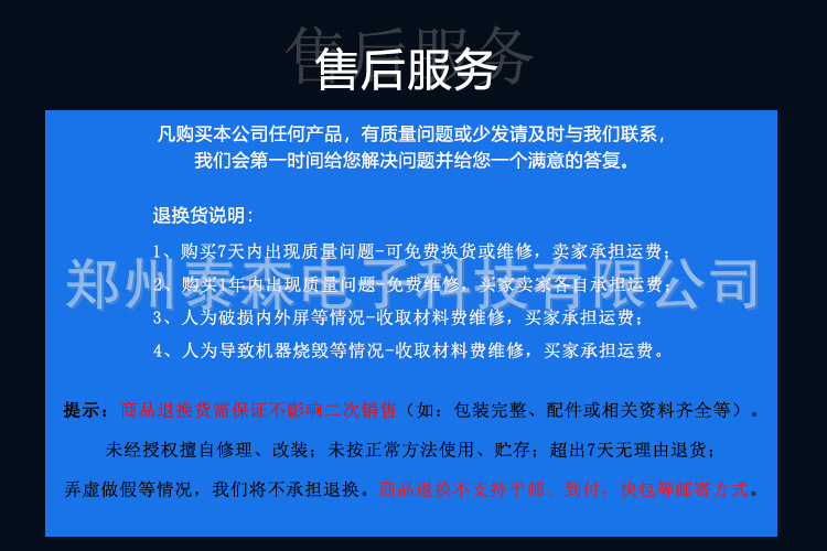 商品售出,如有异常或损坏,请寄回商品并申请退换货,如发国外后出现商品问题且不能退回产品,本店均无法仅退款