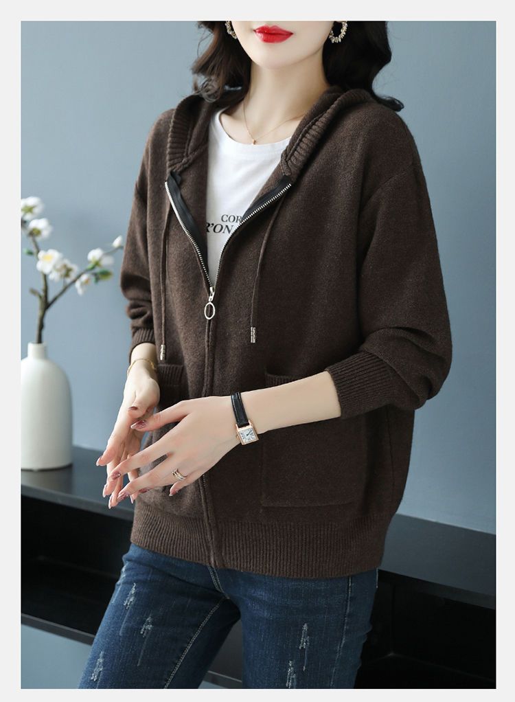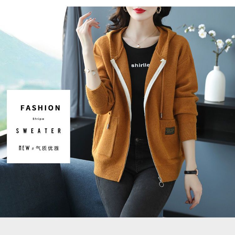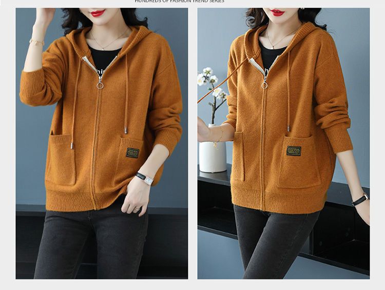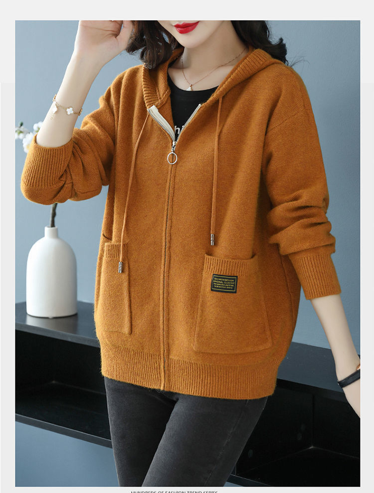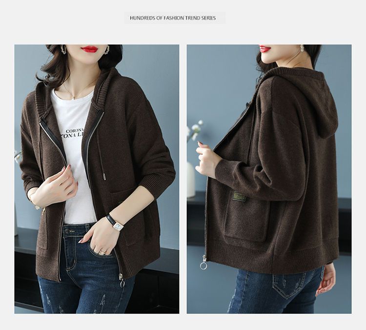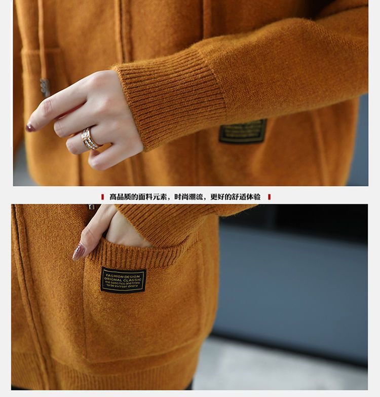 Женский свободный кардиган с молнией, толстый, модный, с капюшоном, корейский стиль для осени и зимы