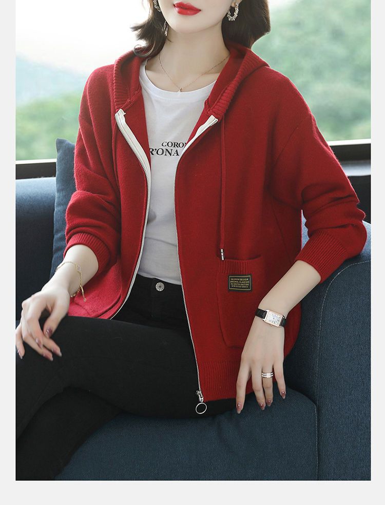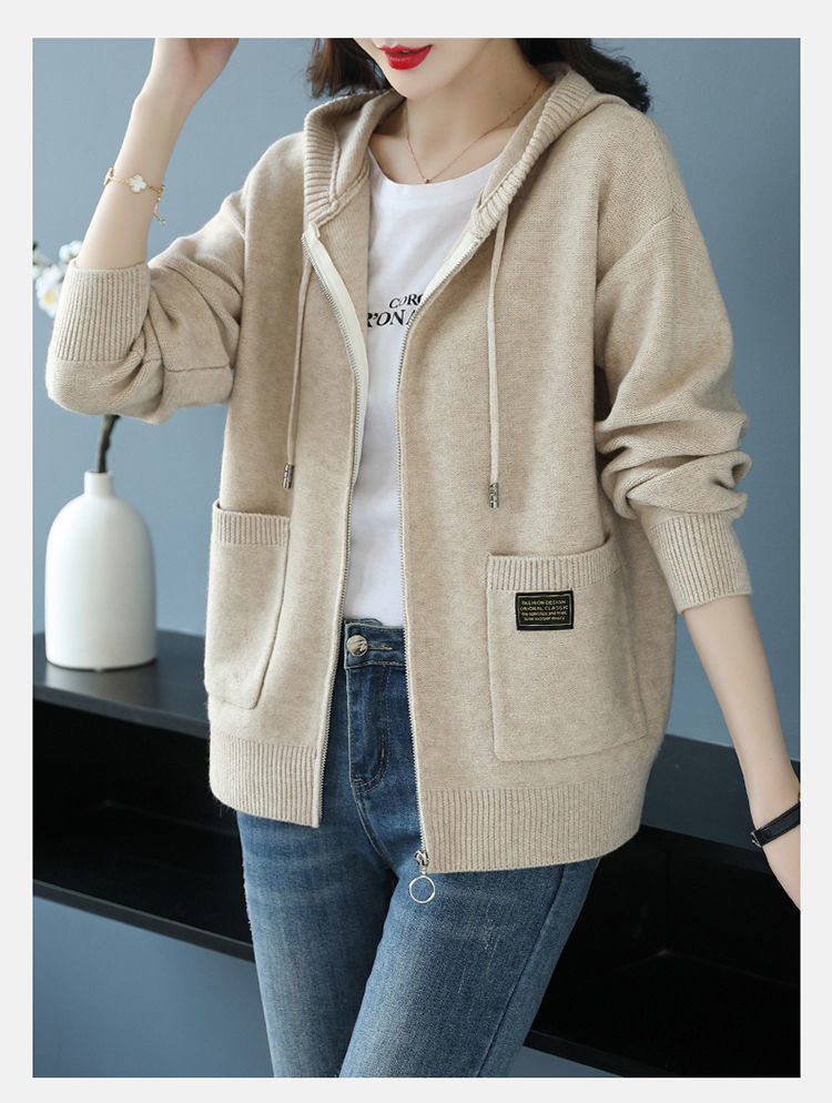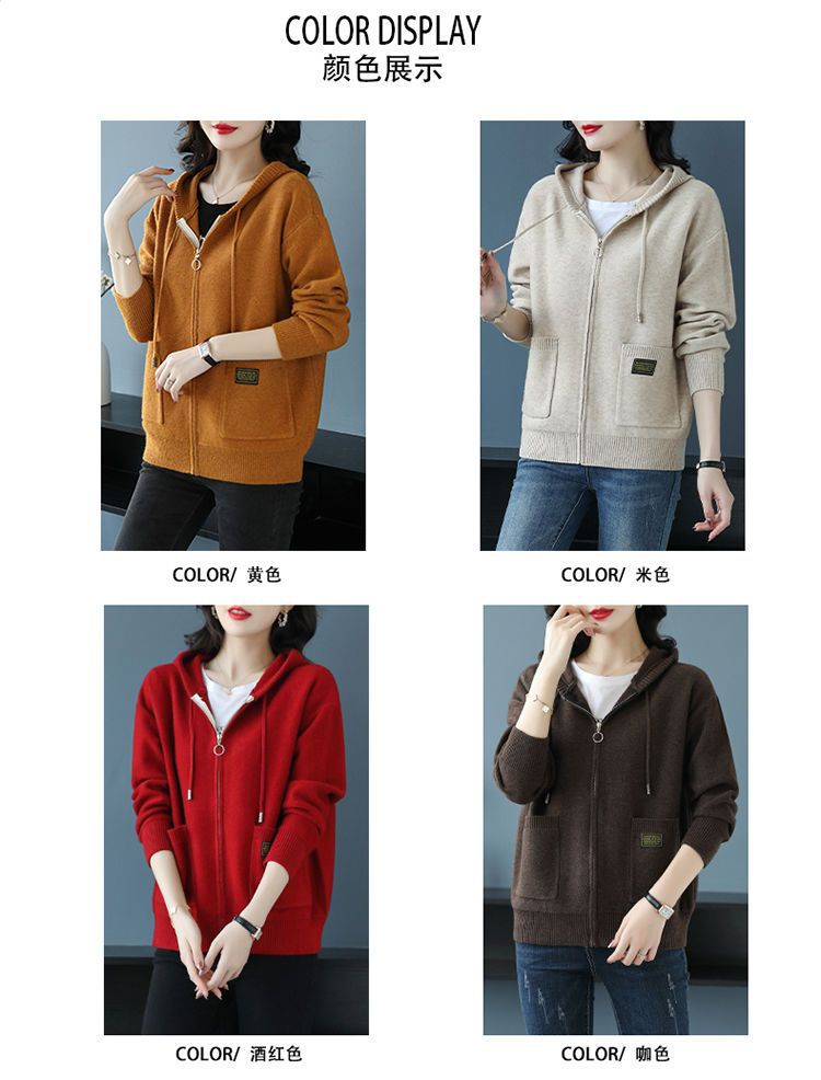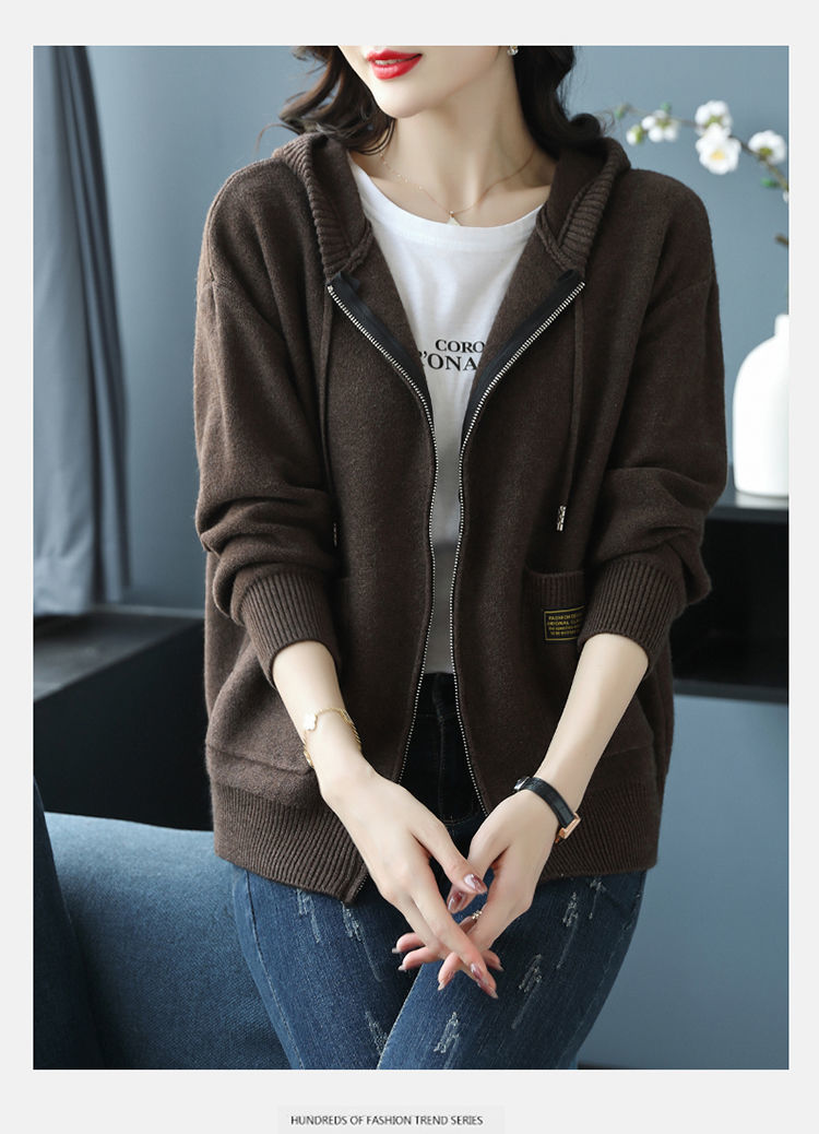 Женский свободный кардиган с молнией, толстый, модный, с капюшоном, корейский стиль для осени и зимы