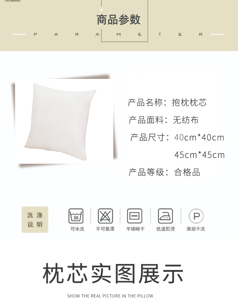 规格尺寸说明:我们和行业标注尺寸的方法一样即枕芯没有充装前枕芯皮子的尺寸,枕芯充装好后,因为有填充物后枕芯会鼓起,测量尺寸的时候只能测量相邻两个角的直线距离。不排除会有1cm-2cm左右的测量差。