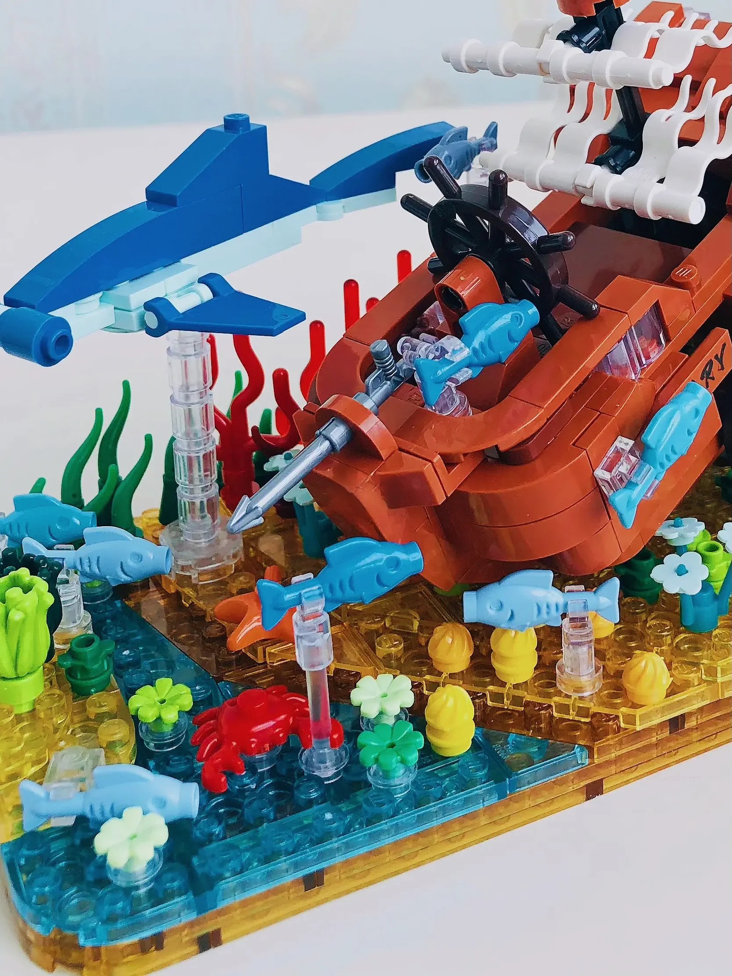 Zhegao Строительные блоки Аквариум Исследование Рыбный танк Освещение Модель Образовательные Собранные игрушки Оптовая продажа