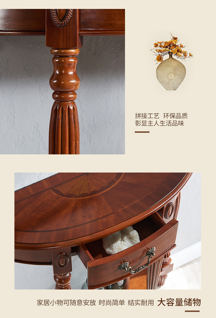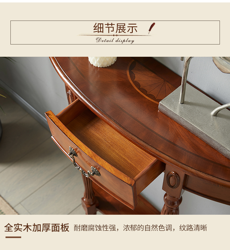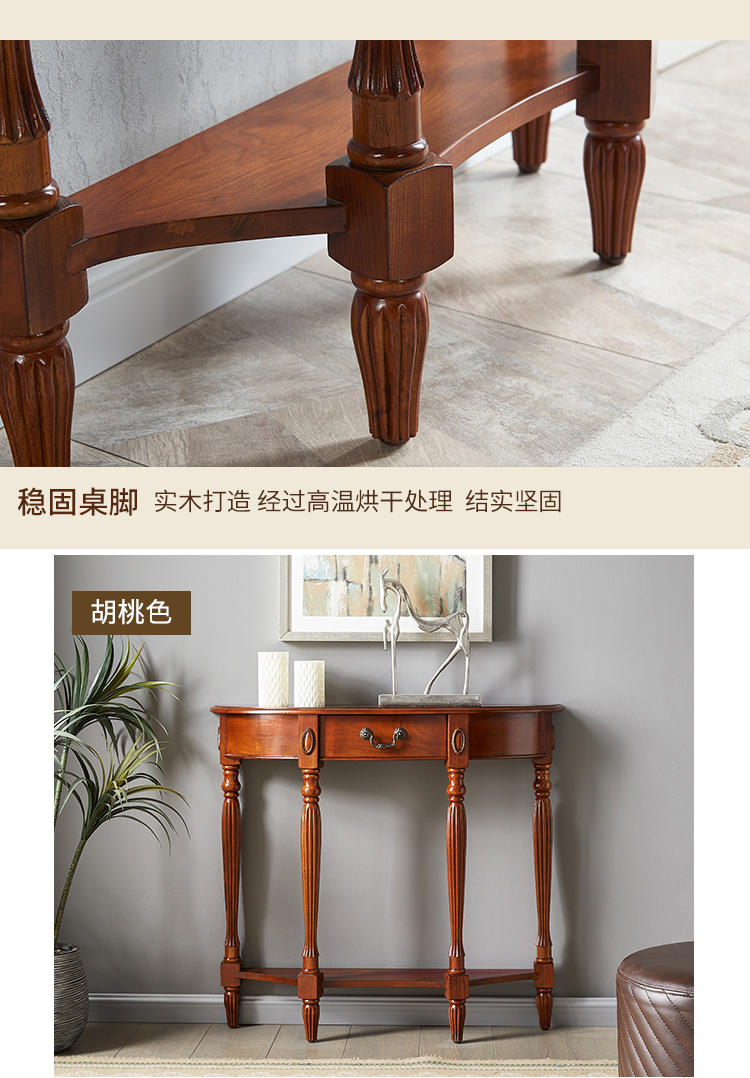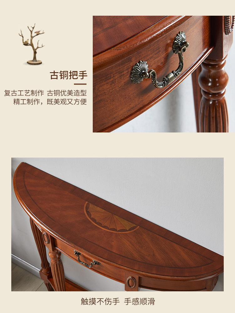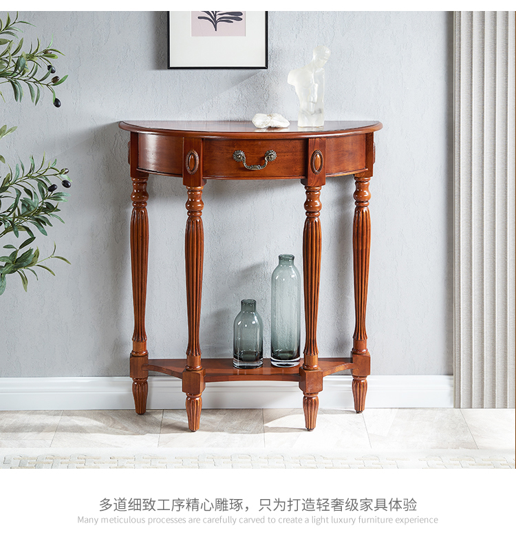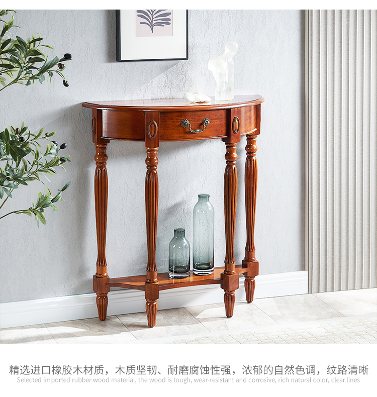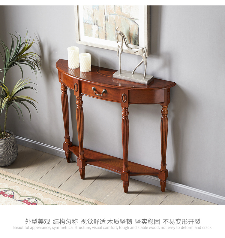 Американский стол из массива дерева полукруглой формы, ультратонкий коридорный стол, простой стол для входа, европейский стиль, перегородка для фойе у стены