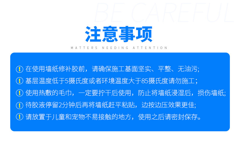 ![]() | Wallpaper repair glue [pure flavor type] 140ml Pack + pointed mouth + masking paper + small scraper + sponge head | ¥3.57 / ≈ 43 ₽ | 15439 | 5424583782198 |