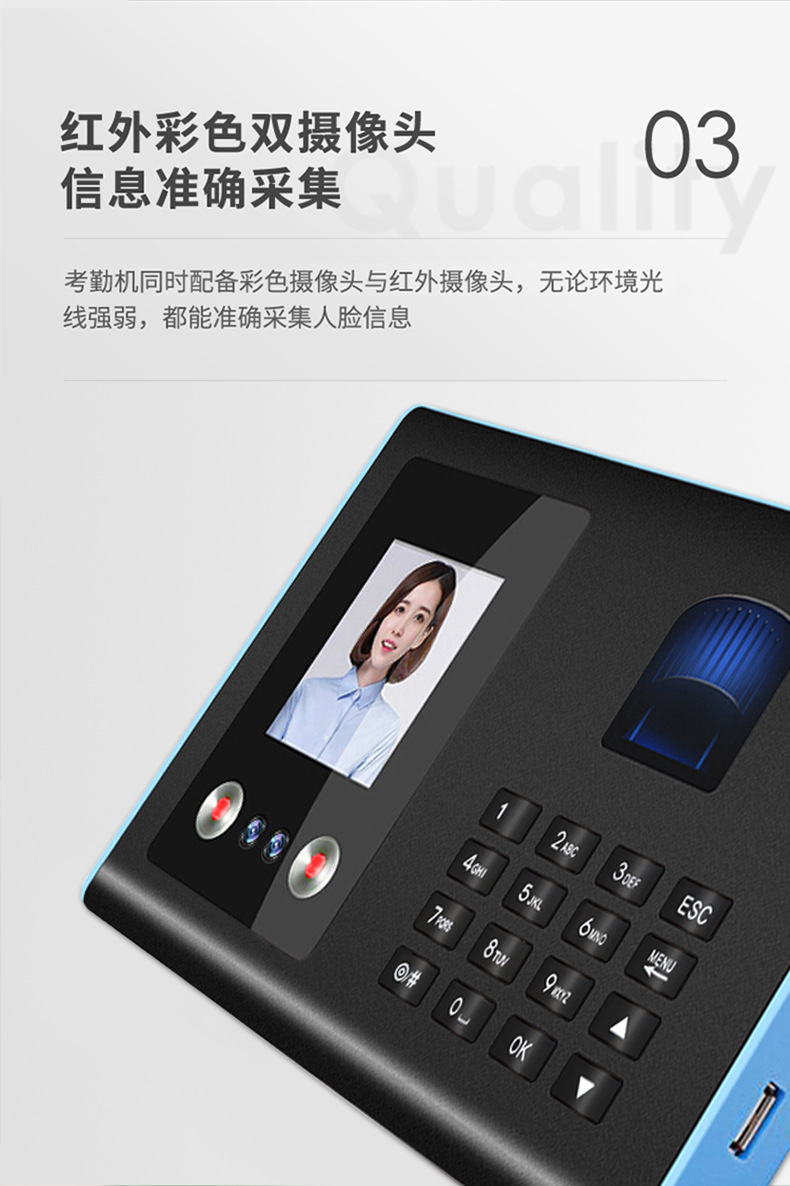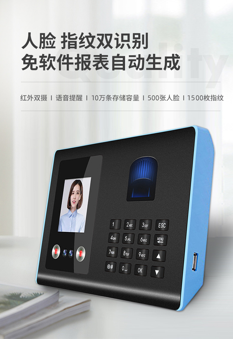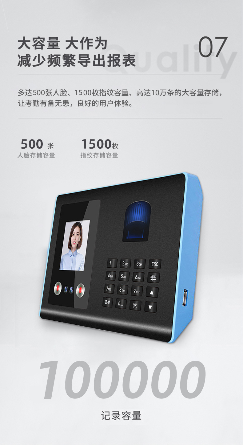 考勤机升级版是500张人脸容量,1500枚指纹容量 支持定制人脸容量1000张3000张-5000张-11000张。