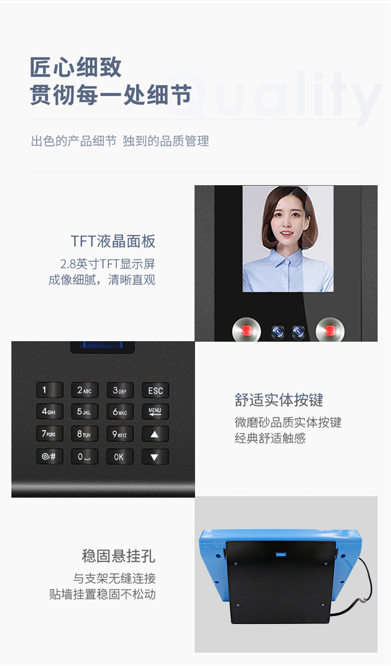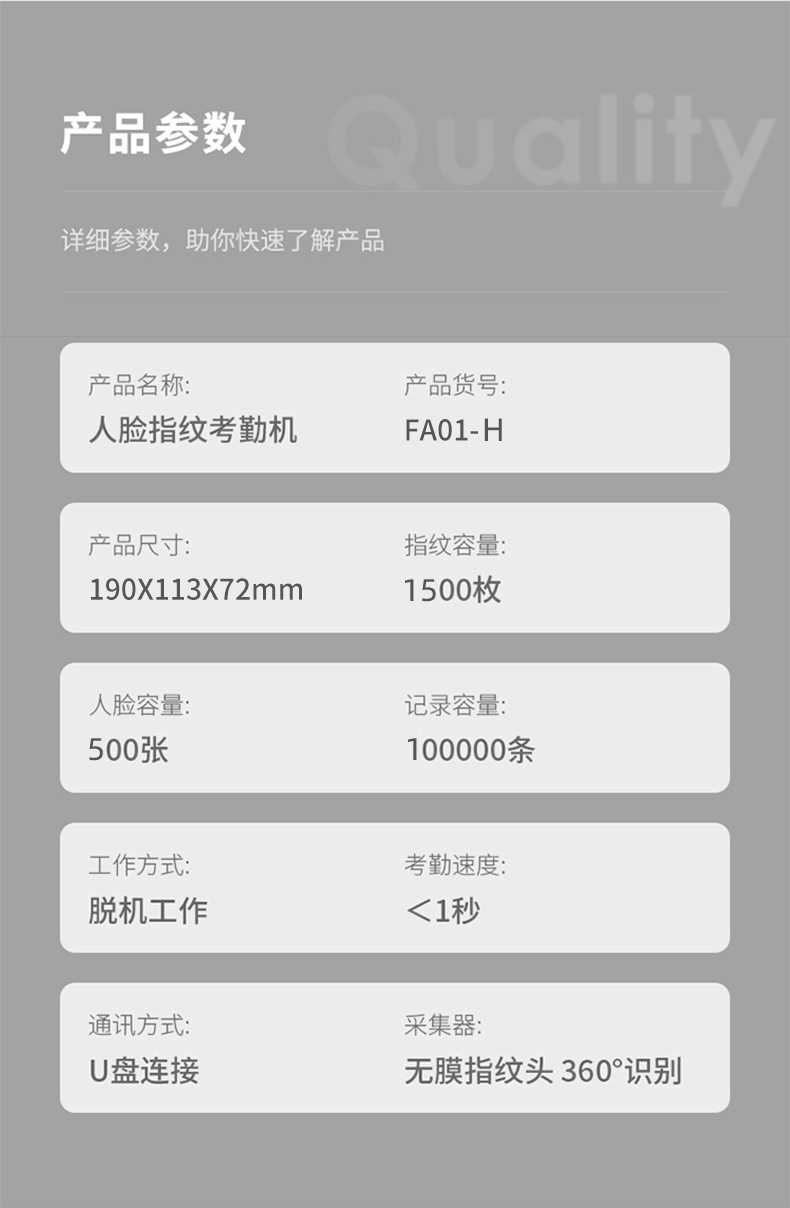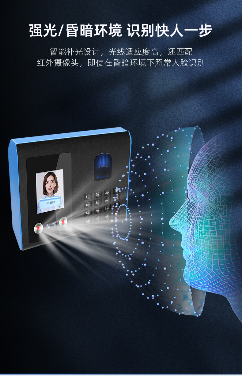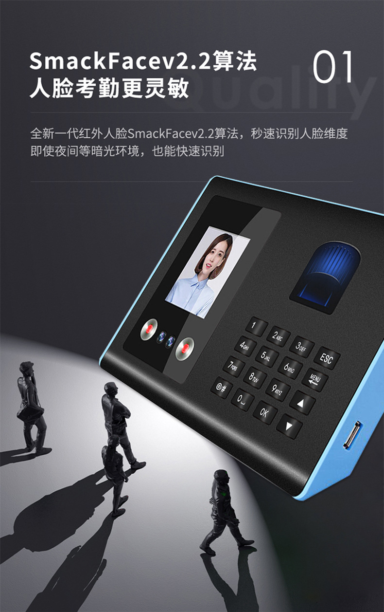 考勤机升级版是500张人脸容量,1500枚指纹容量 支持定制人脸容量1000张3000张-5000张-11000张。