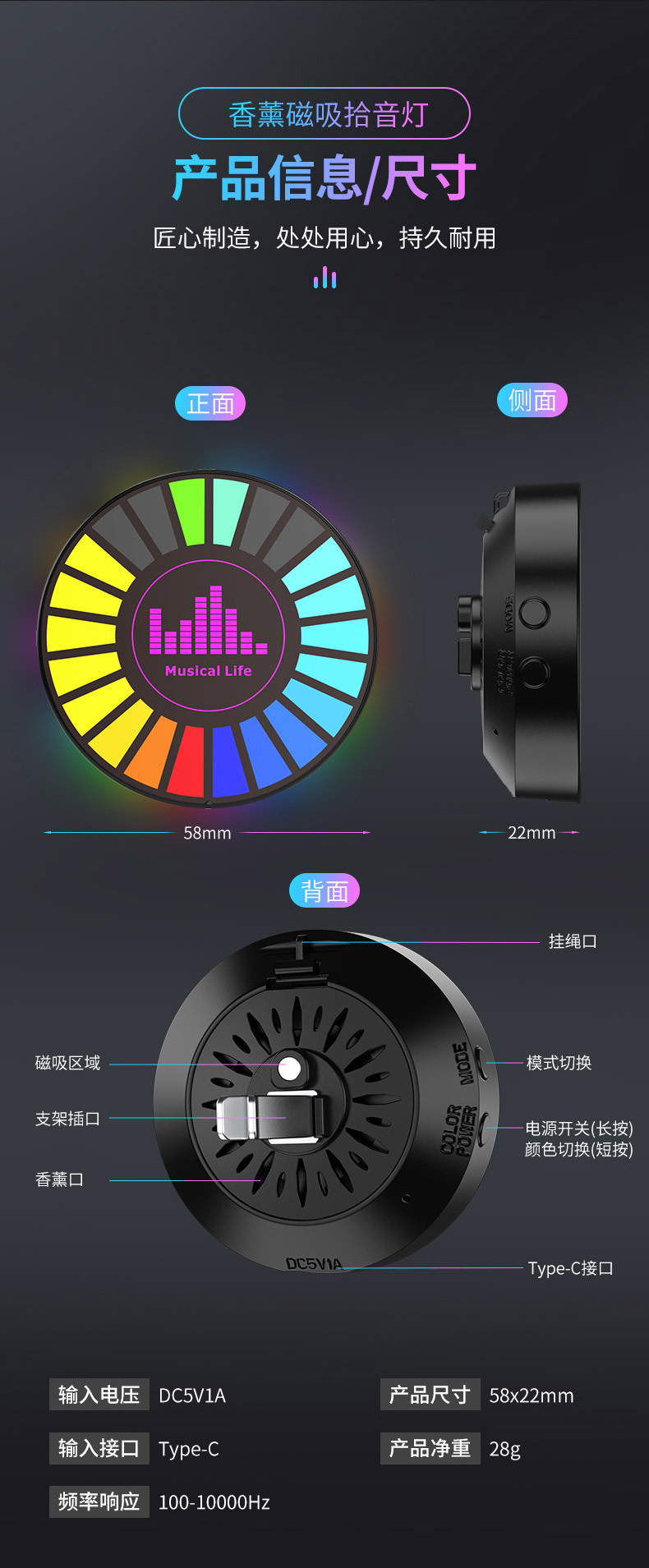 Автомобильный RGB светильник, магнитное всасывание, умный свет для автомобиля, ароматерапия, ритмичный свет, управление голосом, LED индукционный свет
