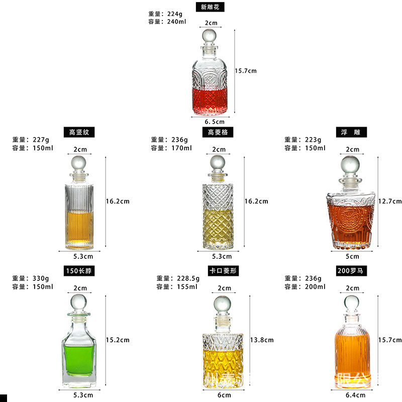 150 мл прозрачная стеклянная бутылка, маленький размер, рельефная бутылка для вина, бутылка для красного вина, оливкового масла, пустая бутылка оптом
