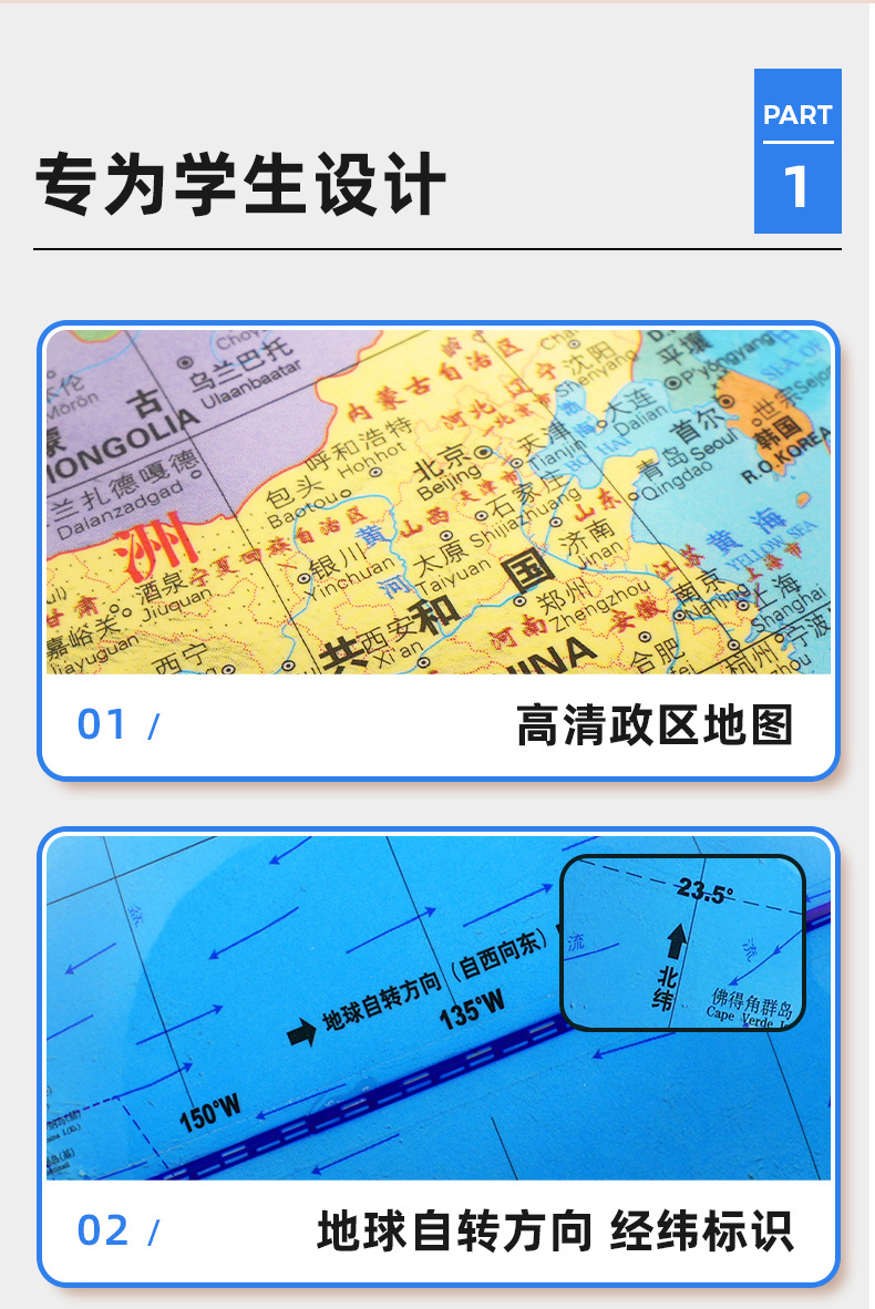![]() | [Charging three-color light] 25cm Student Government area globe + student map | ¥79.9 / ≈ 972 ₽ | 999 | 5436414378128 | |