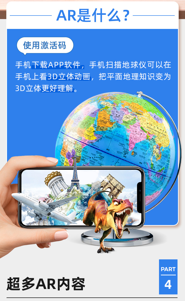 AR глобус Beidou 25 см, высокое разрешение, большие светящиеся украшения для детей и учителей старших классов, рекомендуемые для обучения