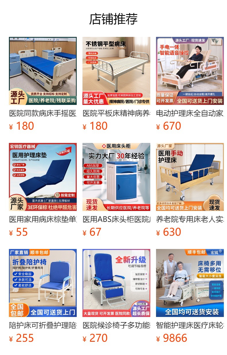 ![]() | Flat nursing bed | ¥170.0 / ≈ 2 068 ₽ | 9864915 | 5266208636580 |