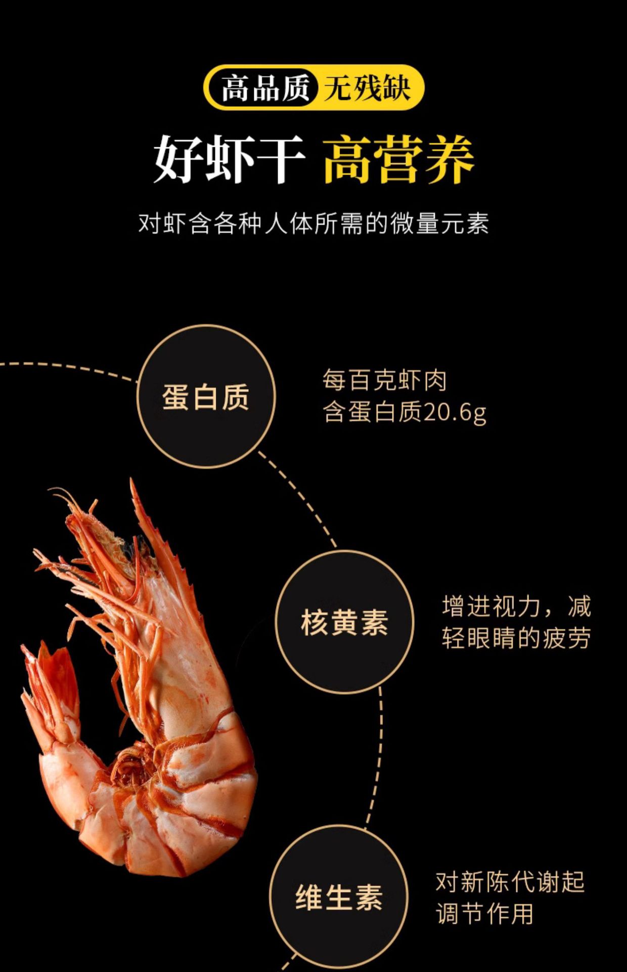 ![]() | 250g*2 packs [17-23 pieces/pack] extra large nine-segment dried shrimps | ¥108.9 / ≈ 1 325 ₽ | 0 | 5960393147976 | |