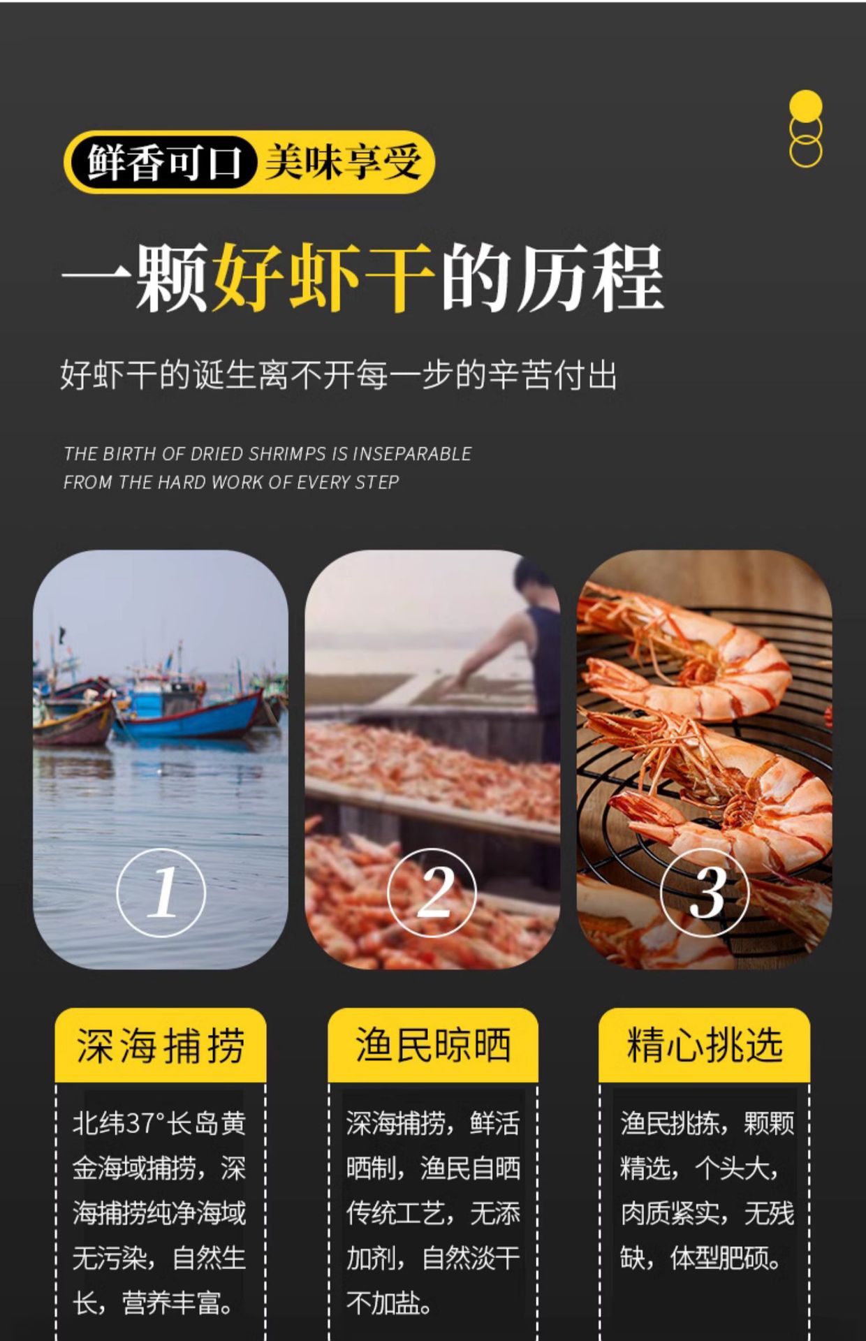 ![]() | 250g*1 pack [about 8-15 pieces/pack] extra large dried nine-segment shrimp | ¥55.0 / ≈ 669 ₽ | 5588821 | 5854655045664 | |