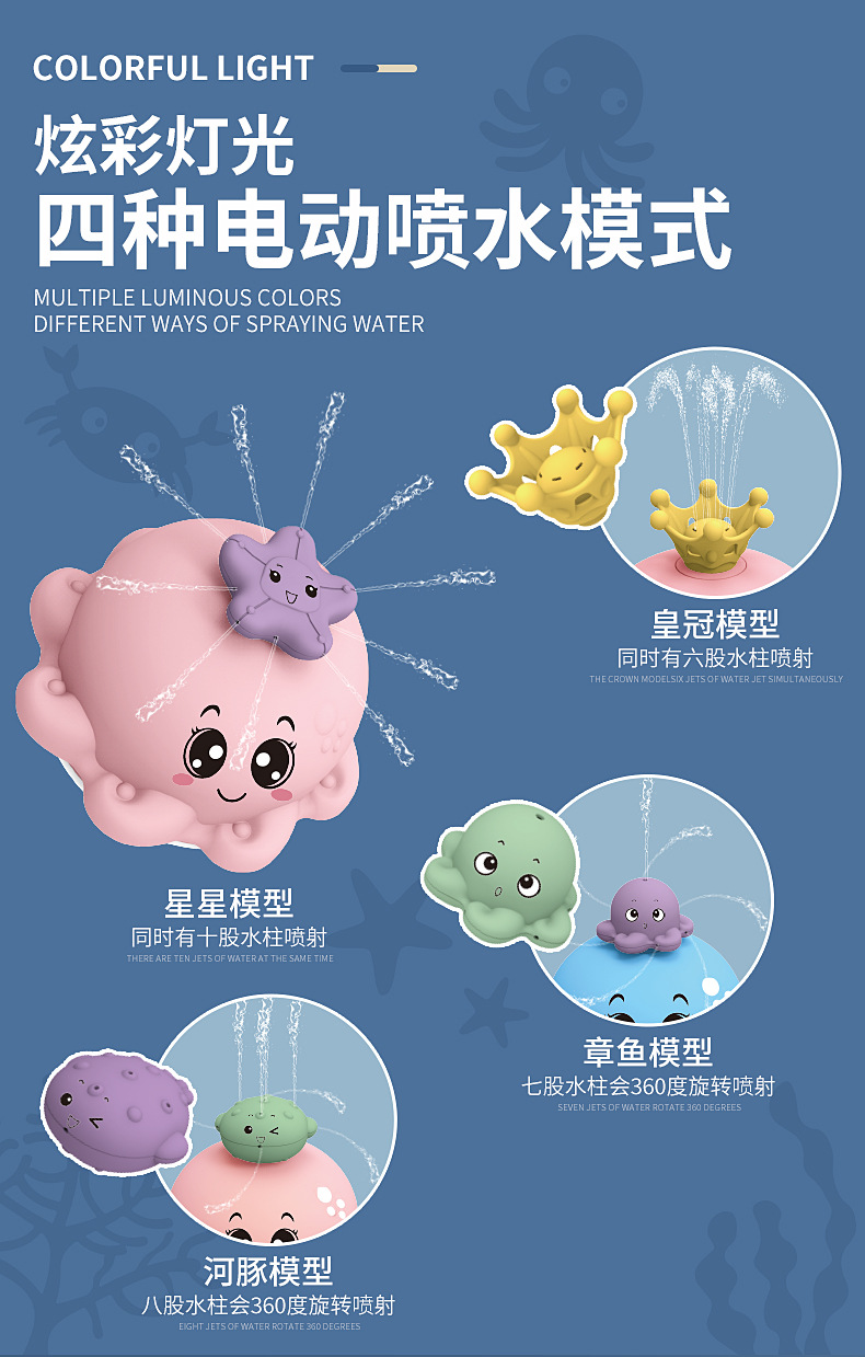 Электрический индукционный водяной шар для купания, музыкальная водяная игрушка, распыляющая вода, кит