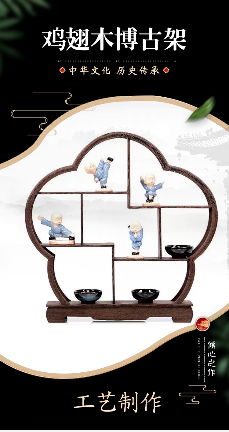 Новый китайский стиль, антикварная полка из куриного крыла, стеллаж для чайников, декор для чайного набора