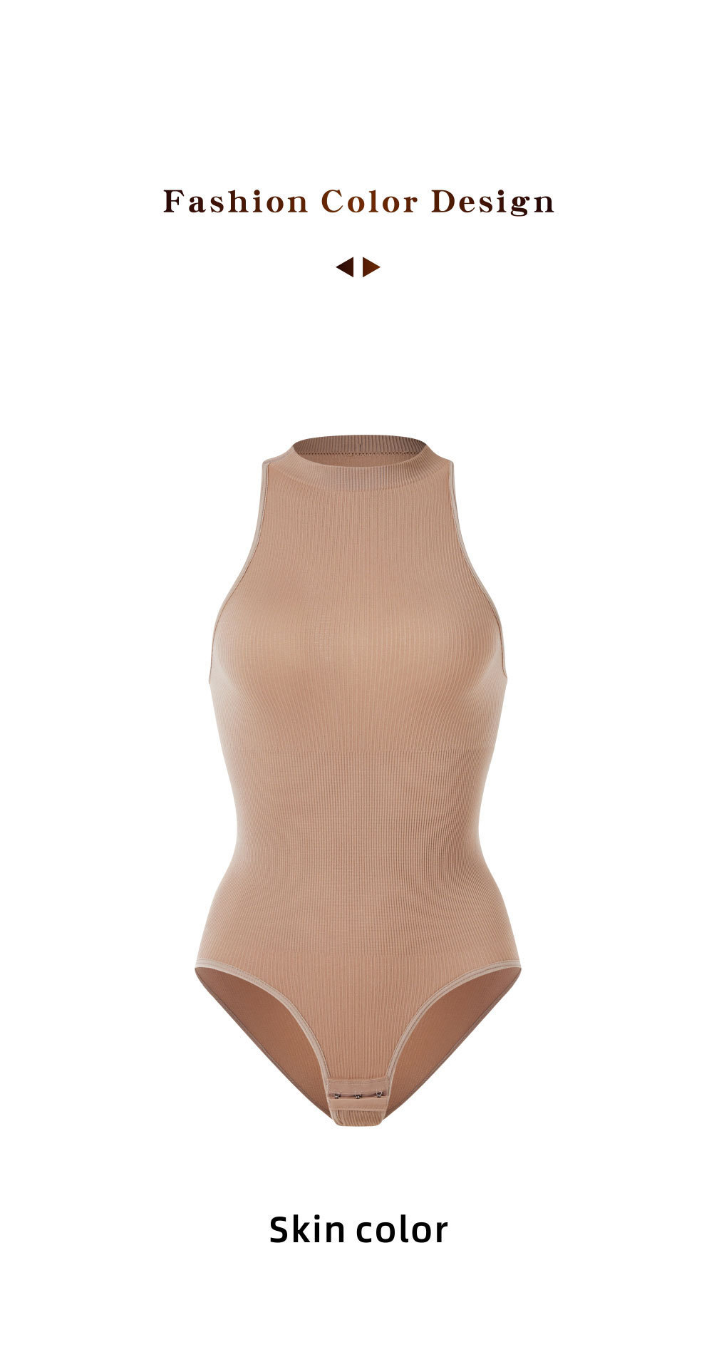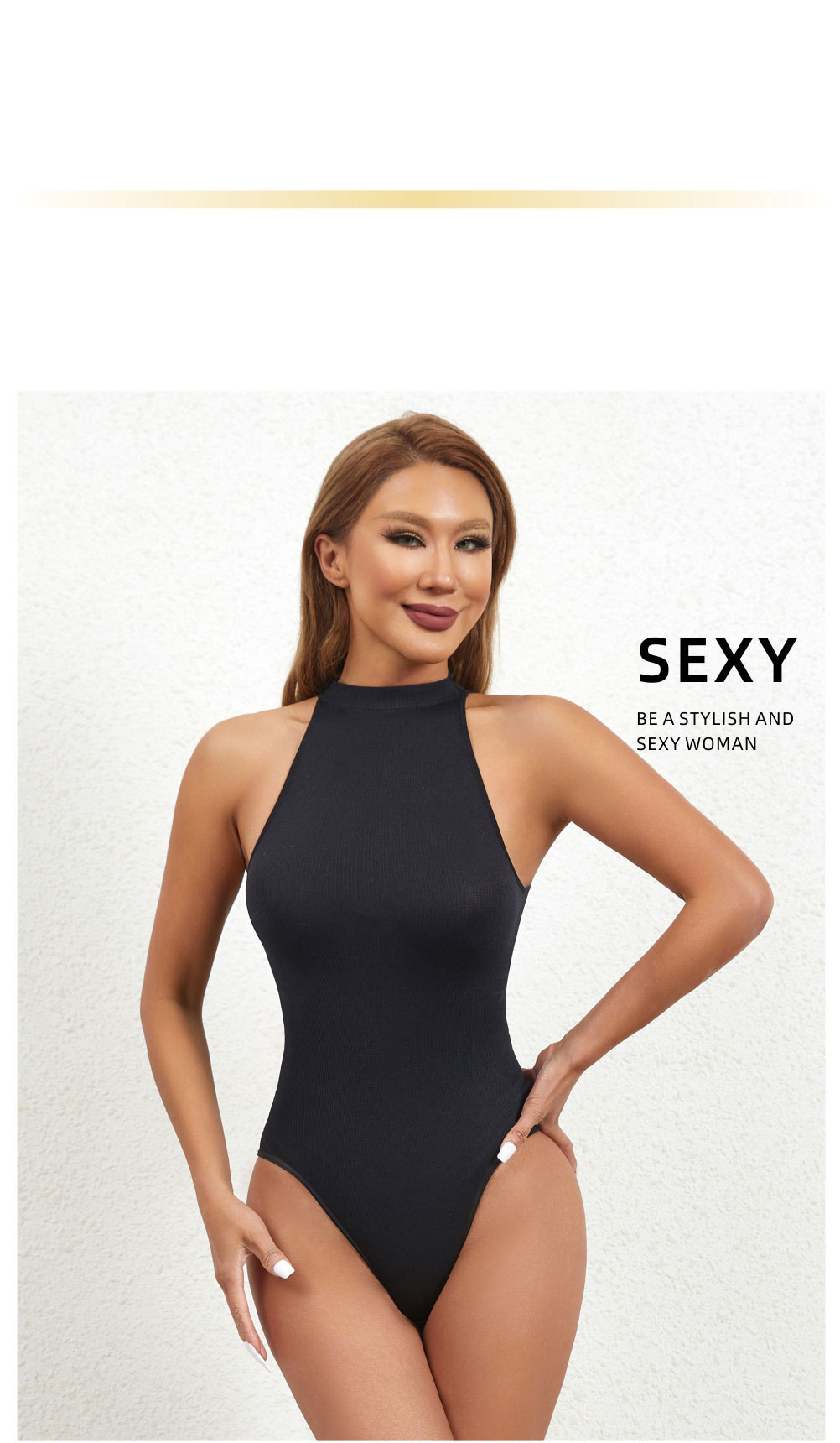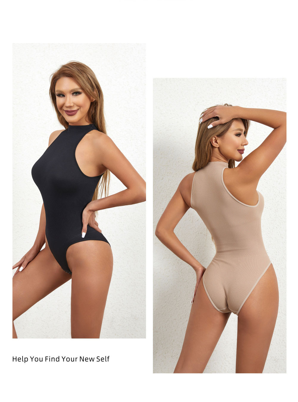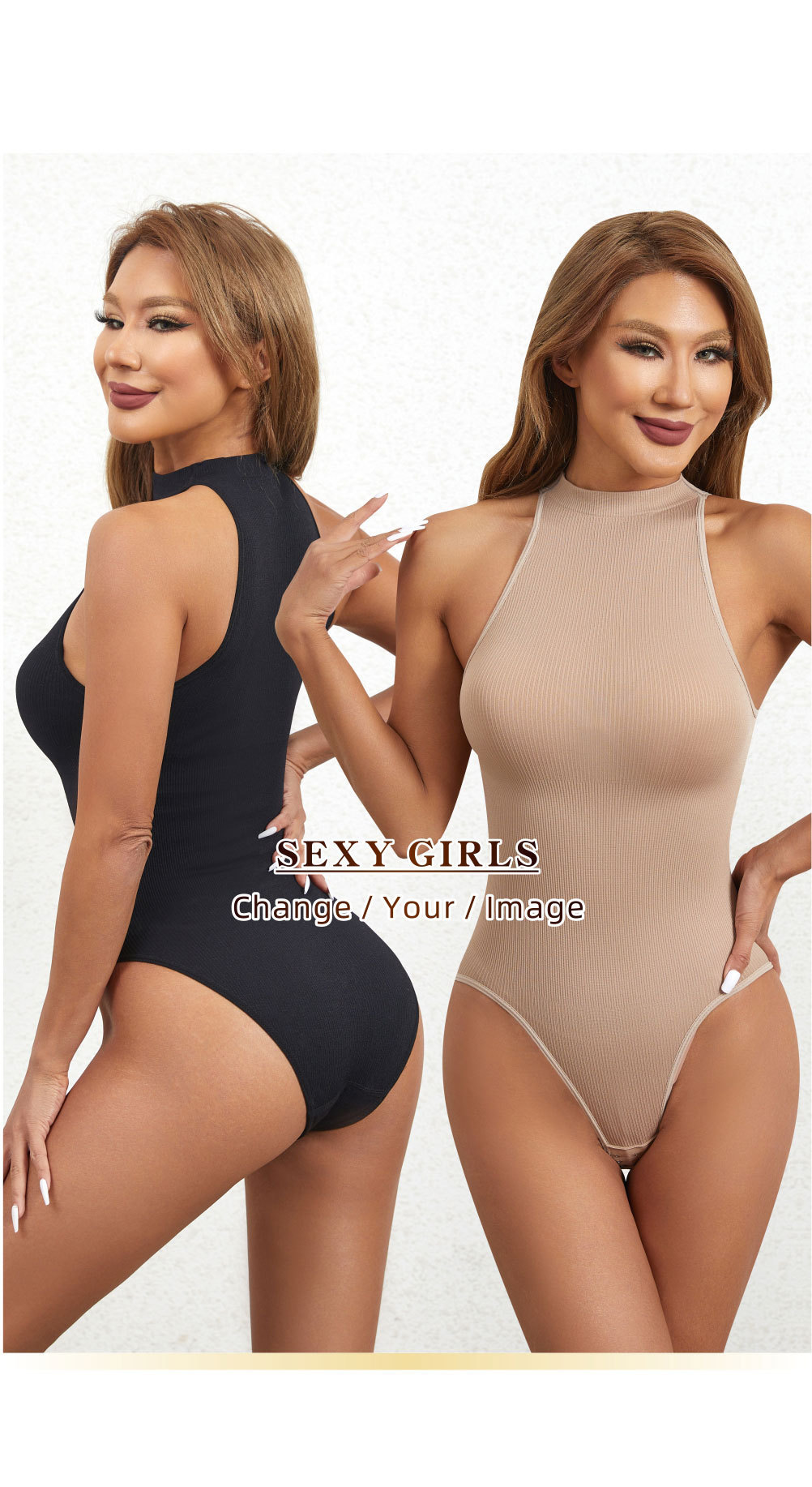 跨境新款女圆领无袖可外穿打底排扣紧身衣收腹连体衣丁字款塑身衣