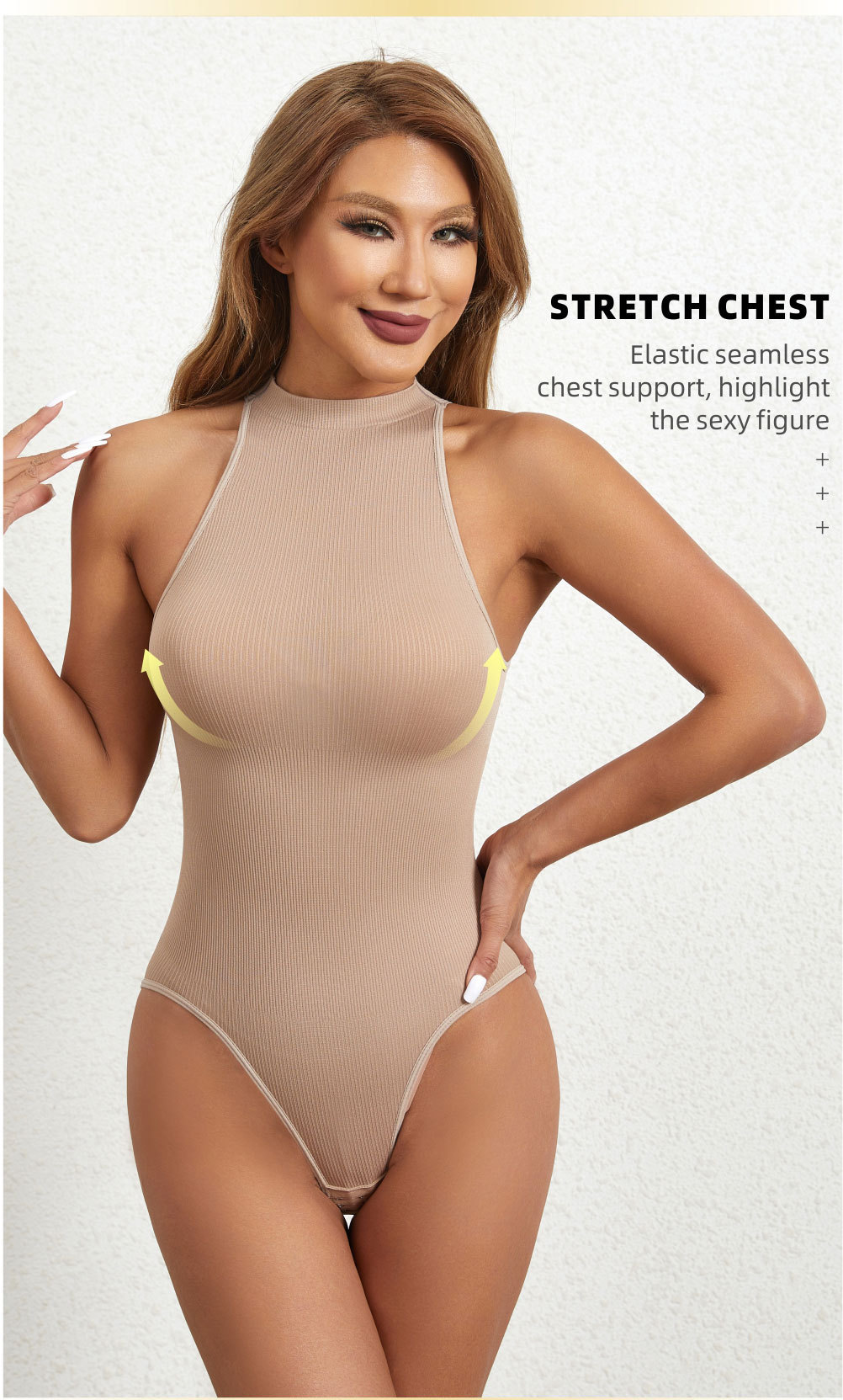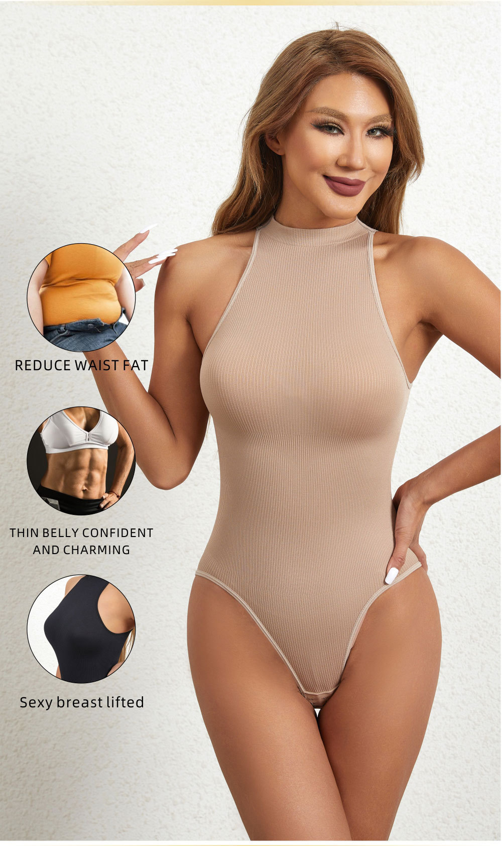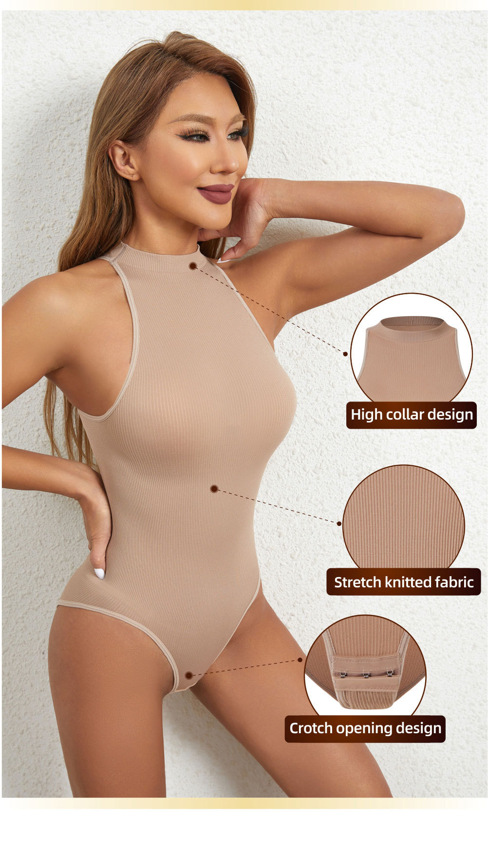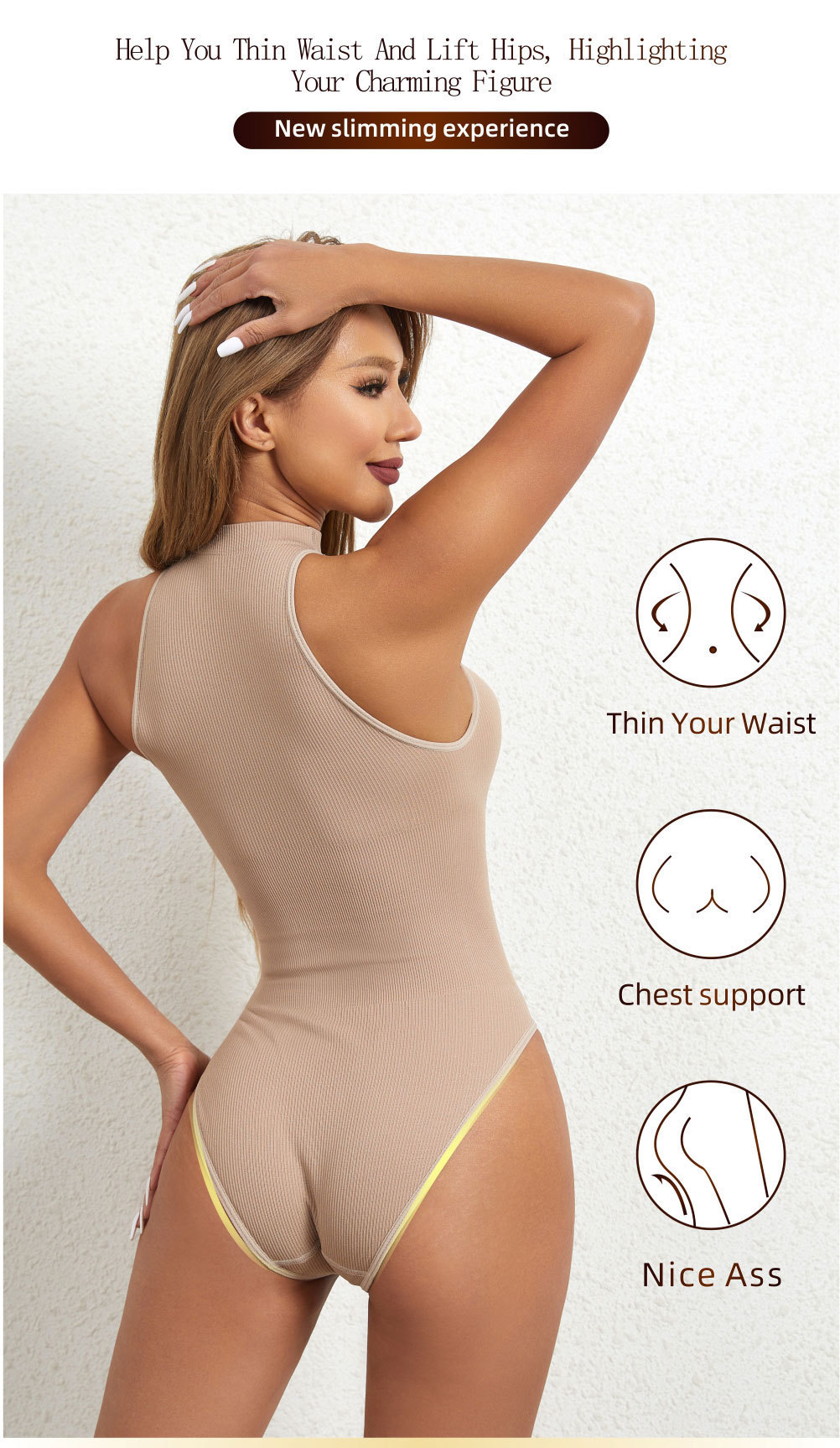 跨境新款女圆领无袖可外穿打底排扣紧身衣收腹连体衣丁字款塑身衣
