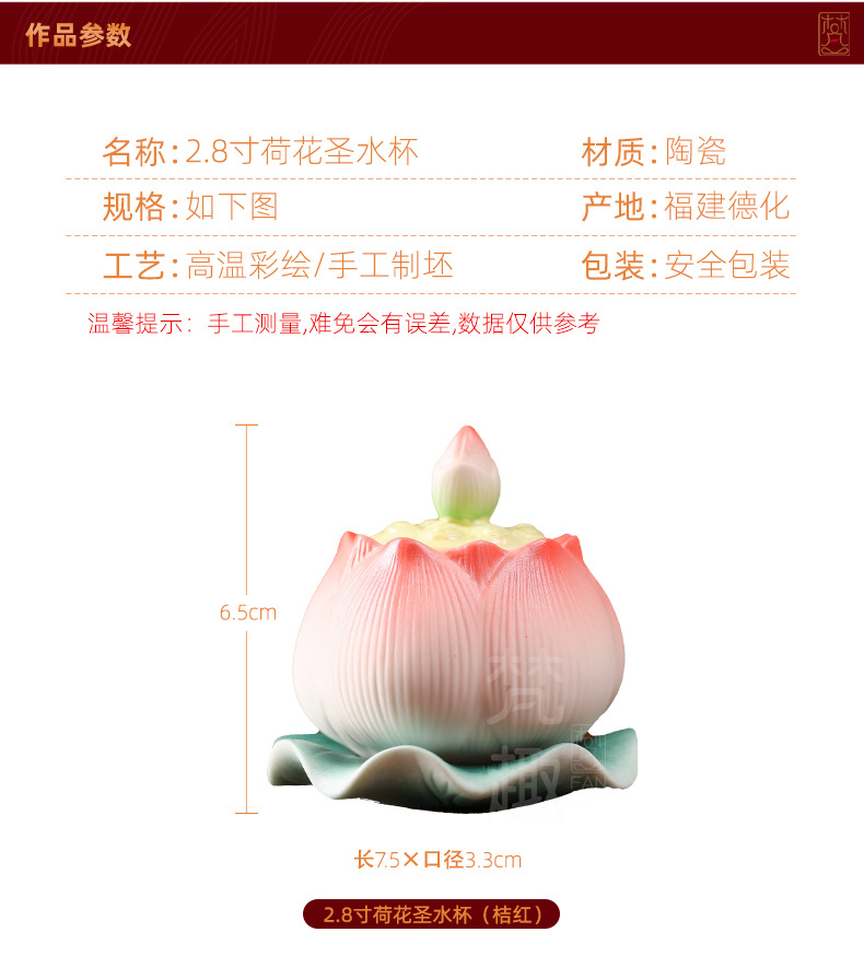 ![]() | 2.8inch lotus holy water cup orange one | 5шт: ¥25.00, 30шт: ¥24.00, 100шт: ¥23.00 | 9676 | 5275371553854 |