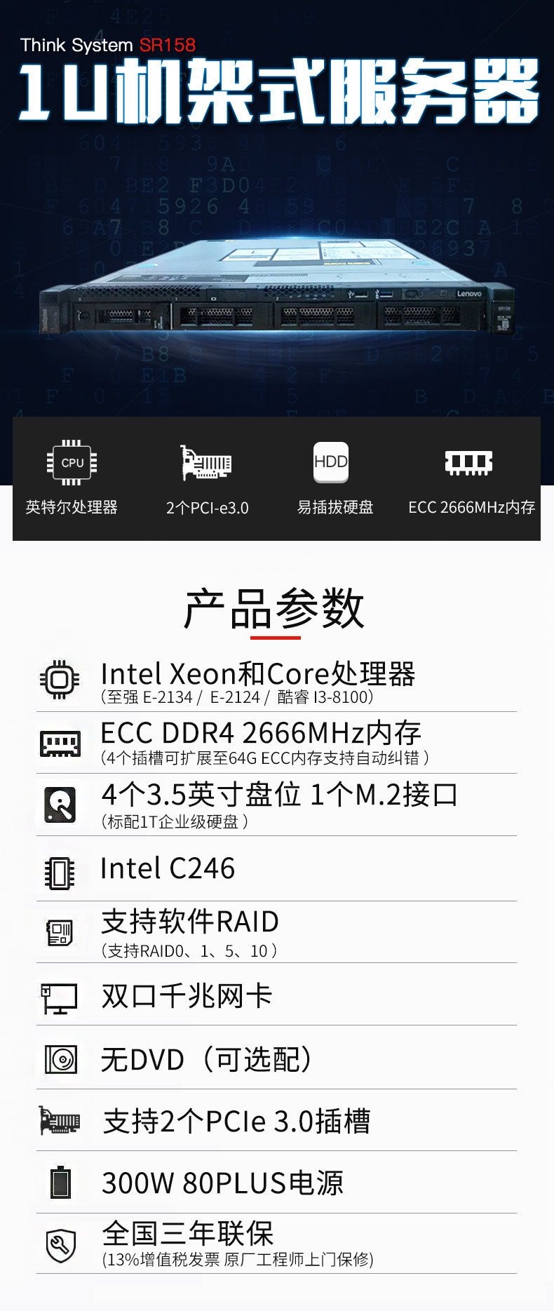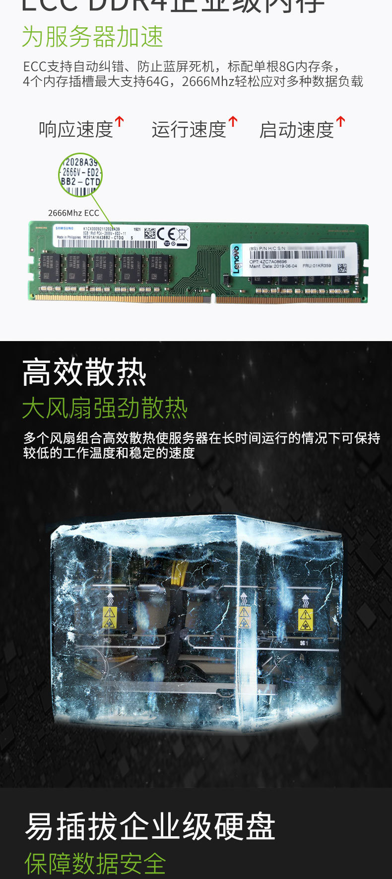 Подходит для сервера Lenovo Sr258 E-2224, 16 Гб, настольный 1U сервер
