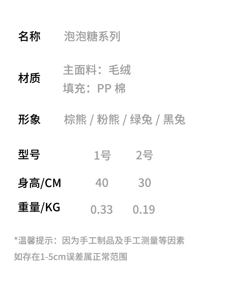 ![]() | Pink Bear | 1# height 40cm | ¥33.2 / ≈ 404 ₽ | 769 | 5272642364827 | |