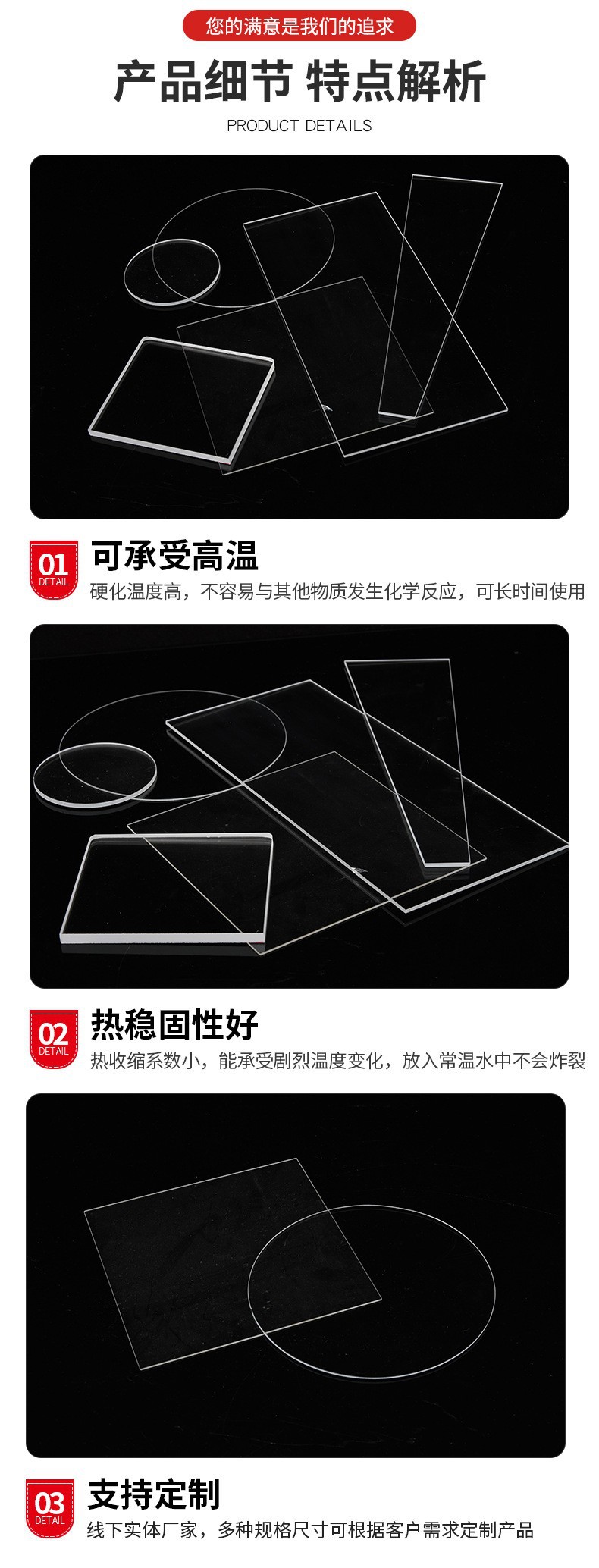 Производитель поставляет окна из кварцевых листов, оптические кварцевые стеклянные листы, квадратные листы, круглые листы, специальные многоспецификационные прозрачные кварцевые листы