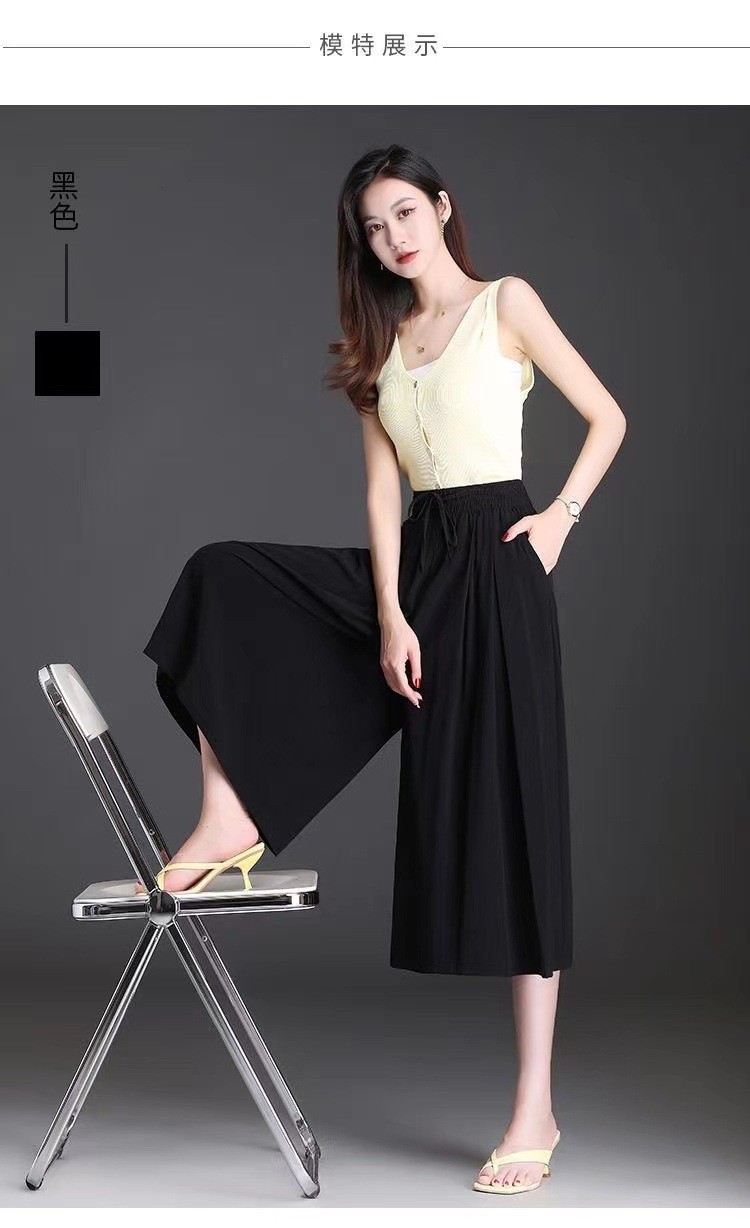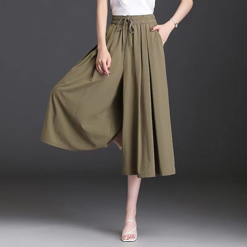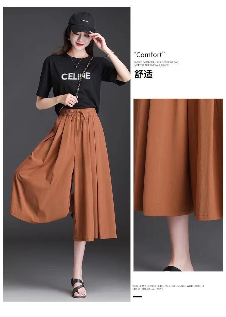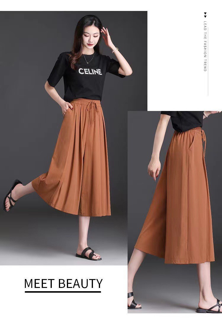 Широкие брюки из ледяного шелка, высокая талия, летние тонкие брюки для женщин, новые, укороченные повседневные брюки большого размера