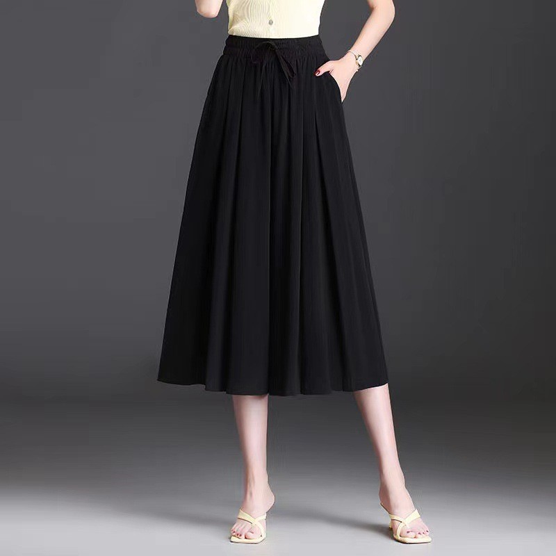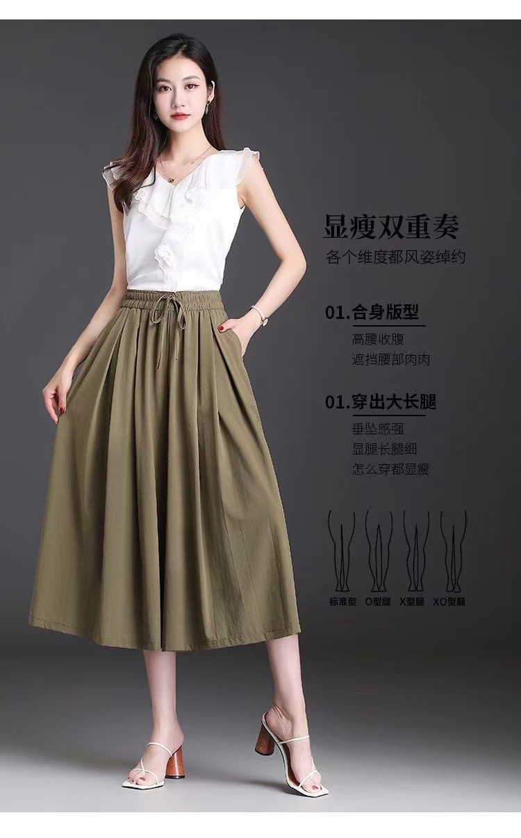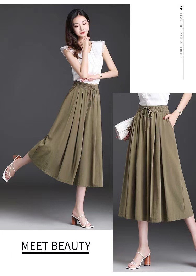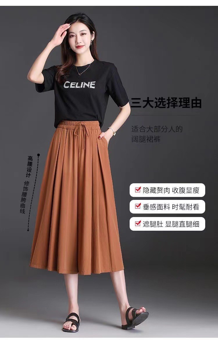 Широкие брюки из ледяного шелка, высокая талия, летние тонкие брюки для женщин, новые, укороченные повседневные брюки большого размера