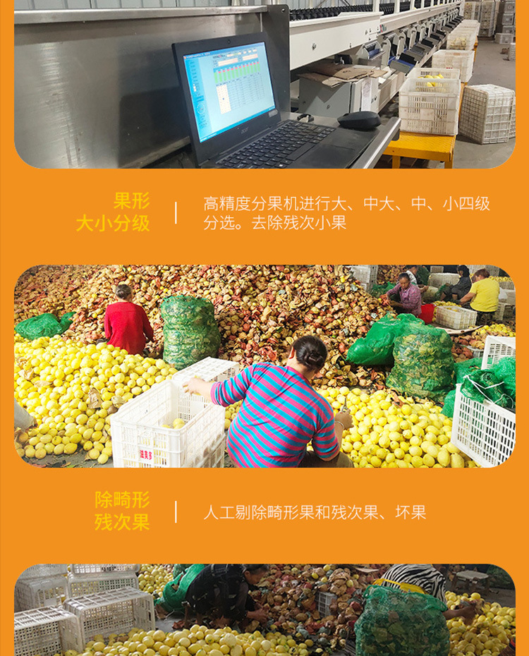商超果为一、二级果,品相较好,电商果为二、三级果,果皮稍有瑕疵,但不影响食用,大小为通货,大小果混合发货;丑果颜值不好,表皮有斑点和疤痕,但不影响口感和滋味,果子大小随机发货,介意勿拍。