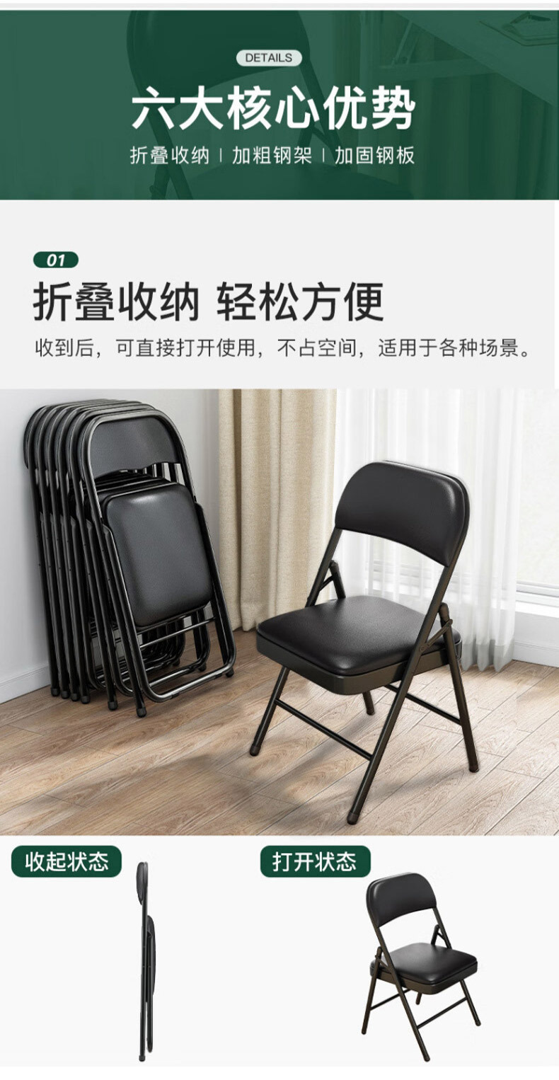 Портативный складной стул для дома, простой стул для общежития, конференц-офисный компьютерный стул, простой обеденный стул из кожи
